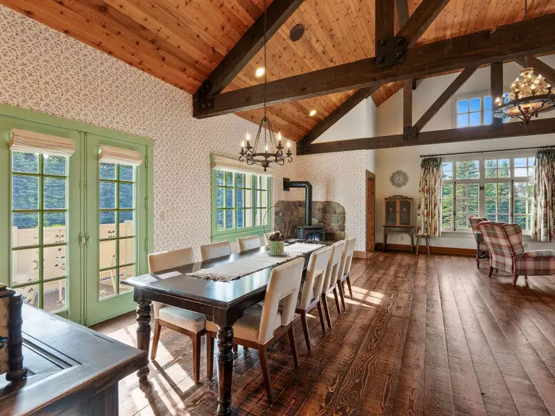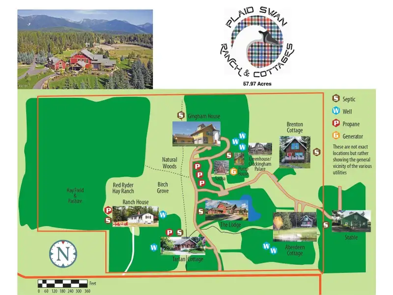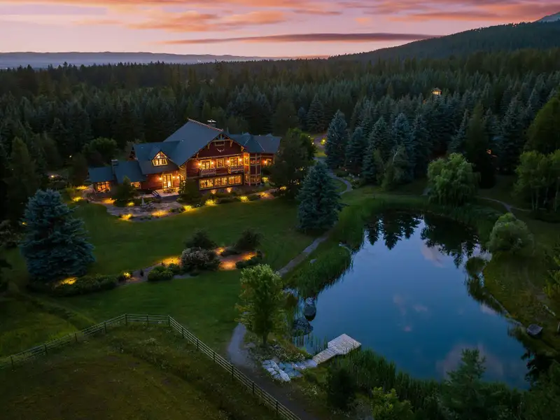Where legacy meets wilderness! An iconic 14,228 SF lodge with five additional homes on nearly 60 acres of hayfields, forest, fenced pasture, and trails. A rare Montana sanctuary and compound built for gathering, roaming, and living fully immersed in nature. Plaid Swan Ranch is among the most distinguished estates in the Flathead Valley, representing a magnificent offering where cinematic legacy and Montana's raw natural beauty converge. Encompassing nearly 60 acres of pristine land at the base of the Swan Mountain Range, this exceptional property includes fabulous views of Jewel Basin, one of northwest Montana's most unique hiking areas. Just 30 miles from Glacier Park International Airport and a short drive from the vibrant village of Bigfork, this property is an exceptional haven for those who value both seclusion and proximity to vibrant community life. At its center stands an extraordinary 14,228 square foot, chalet-style main residence inspired by the iconic McDonald Lake Lodge in Glacier National Park. Designed with a refined, upscale mountain style and decorated to represent a European hunting lodge, this architectural masterpiece showcases a breathtaking great room of more than 2,000 square feet, with soaring 27-foot vaulted ceilings and an impressive stone fireplace that doubles as a rock-climbing wall. Blending luxury and function, the home is set up for unforgettable entertaining and features a sunroom with fossil stone floors and exquisite hand-painted ceiling murals, elegant marble-floored dining areas, a custom-designed theater, an expansive wine cellar accommodating approximately 2,900 bottles, multiple balconies and patios, whole-house speakers and smart lighting automation, an elevator servicing all levels, and countless refined and romantic touches throughout. Beyond the main residence, the estate offers a wealth of additional accommodations and amenities. These include a 2BD/1BA carriage house apartment attached to the main residence; a 2BD/1BA caretaker's cottage; two charming 1BD/1BA guest chalets; a 2BD/1BA fairytale-like cottage, enchanting visitors with its storybook character; and a 1BD/2BA ranch house. A 4,200-square-foot, 4-stall stable complements the property, alongside cross-fenced pastures, a private trout-stocked pond, Finnish sauna, scenic walking trails, a greenhouse, chicken coop, and an array of outbuildings that include a heated generator house and loafing sheds. Approximately 20 acres are dedicated to dryland hay, with another 20 acres of mature forest, while the remaining acreage encompasses barns, pastures, manicured landscaping, and residences, all seamlessly connected by a winding paved driveway, adorned with wired lamp posts, that ensures privacy and effortless access throughout the estate. No expense was spared in developing this remarkable property, which features superior infrastructure and exceptional versatility for a wide range of uses. Whether envisioned as an exclusive family compound, an equestrian paradise, a retreat space, a luxurious wedding venue, or a serene wellness sanctuary, Plaid Swan Ranch presents a rare opportunity to own a true Montana legacy estate - one that stands as a masterful fusion of history, refined design, and enduring beauty. This property is offered turn-key with exclusions and enjoys the benefits of no HOA or CC&Rs. Plaid Swan Ranch is not merely a property, but an invitation to embrace the grandeur, serenity, and boundless possibilities that define the Montana dream. A 55+ page Homebook will be provided upon request. All prospective buyers must provide financial pre-qualifications/certification of funds, information on buyer profile, and sign an NDA prior to showing.