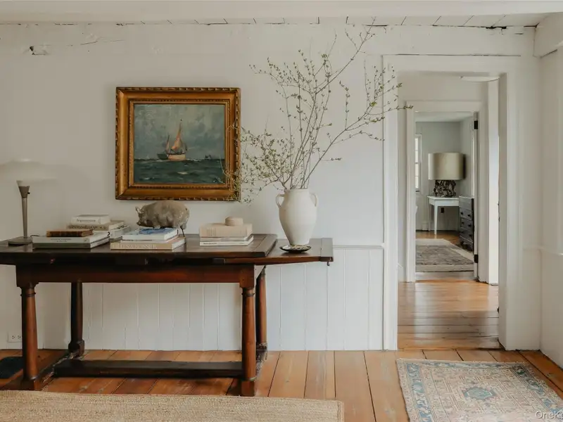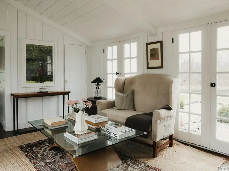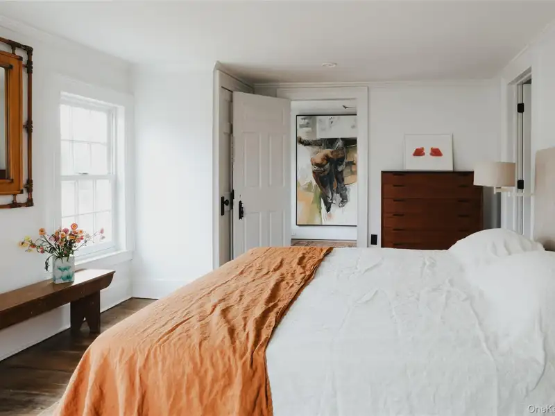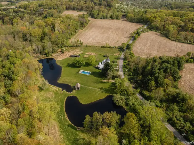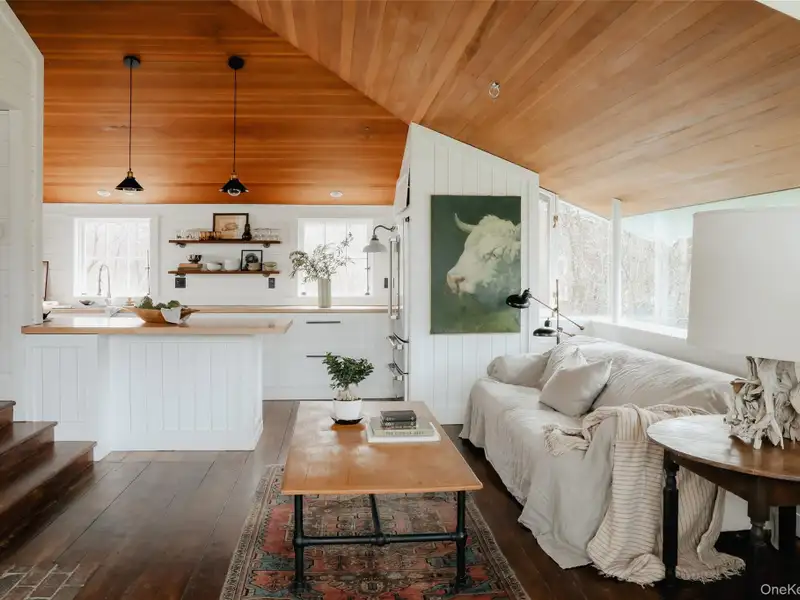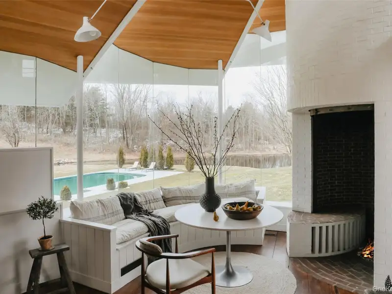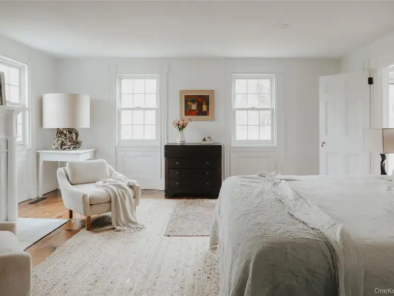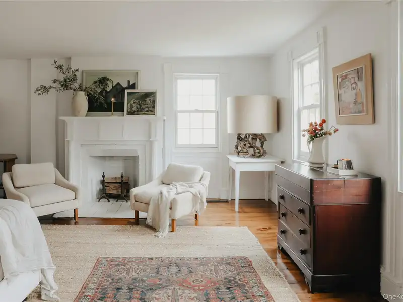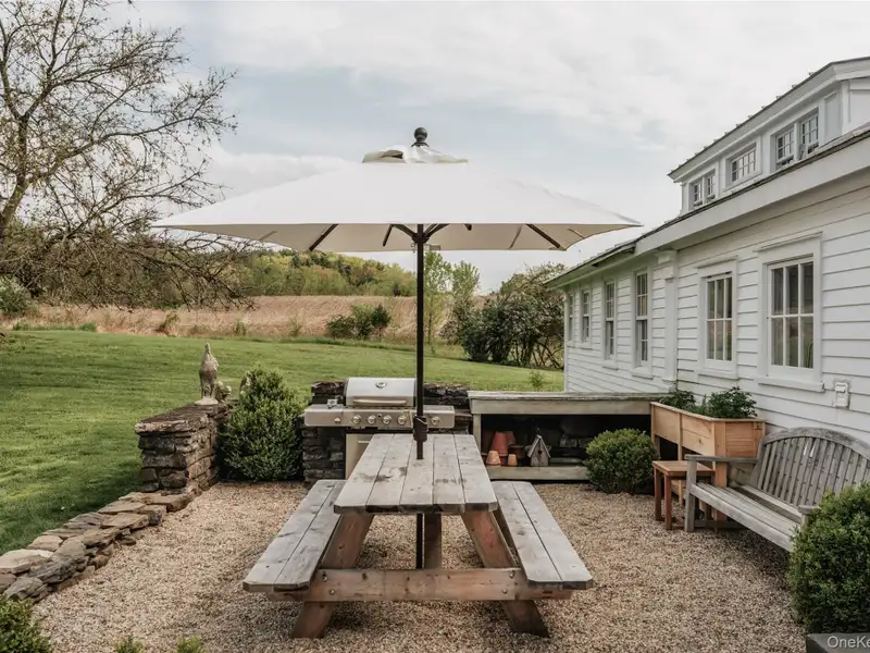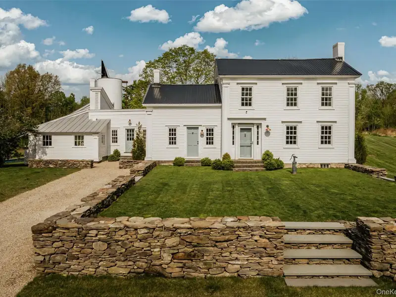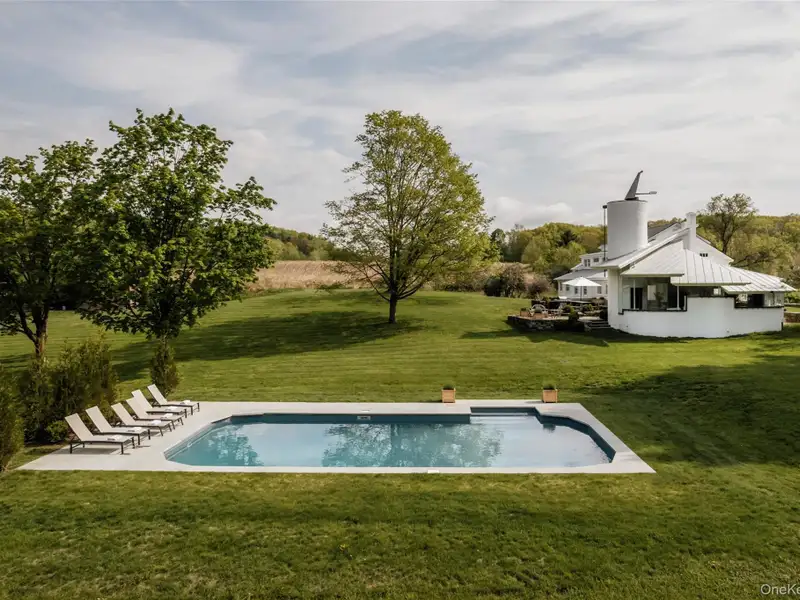 Welcome to Hardwicke Farmhouse. Set on more than eight private acres along a quiet country road, this exceptional Greek Revival farmhouse tells the story of nearly three centuries of Columbia County history. The original structure dates to the 1740s, with a gracious Greek Revival center hall added in the 1840s. Its striking mid-20th-century modern addition was designed by world-renowned architect John Messick, a founding partner of MCWB Architects and contemporary visionary with I. M. Pei. His work reimagined the property with bold architectural lines and a silo-inspired great room that fills the home with light and offers bucolic far-reaching views of the surrounding farmland.Inside, the historic rooms feel intimate and grounded. Hand-hewn beams, wide plank floors, restored hardware, and Dutch doors reflect the homes early roots. Morning light drifts through the front parlor and dining room, both anchored by wood-burning fireplaces. Beyond these rooms, the architectural addition opens into a dramatic great room with an inglenook fireplace and sweeping views of the pool, barns, and fields. The kitchen and dining area share this airy, modern space, creating a natural flow for long meals, gatherings, and quiet mornings observing each seasons simple, natural charm. Three en suite bedrooms include a spacious first floor primary suite with its own fireplace, a large dressing room, and views across the property. The home offers gracious gathering spaces and quiet corners to escape to with a book or cup of tea. Additional rooms throughout the home offer flexibility for offices, studios, or guests. Outdoors, the landscape includes remnants of the old apple orchard, newly planted trees and gardens, and open fields and wildflower meadows. A reclaimed adjacent pond, fed by two freshwater springs, sits beside the pool and stone terraces, and weathered barns add authentic rural character. The residence is surrounded by 600 acres of farmland, offering beautiful uninterrupted pastoral views. The property has undergone extensive renovations and thoughtful improvements, including a new metal roof and significant updates across both the interior and landscape. Kinderhook, Chatham, and Hudson are all within easy reach, and Albany International Airport is about thirty minutes away, making travel surprisingly simple. Daily life here is shaped by quiet countryside, nearby farms, local dining, and easy access to the best of the Hudson Valley.