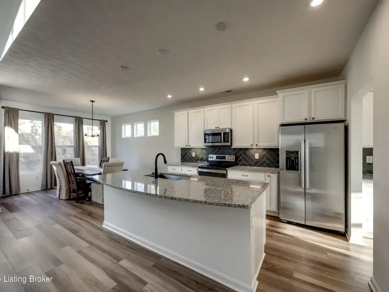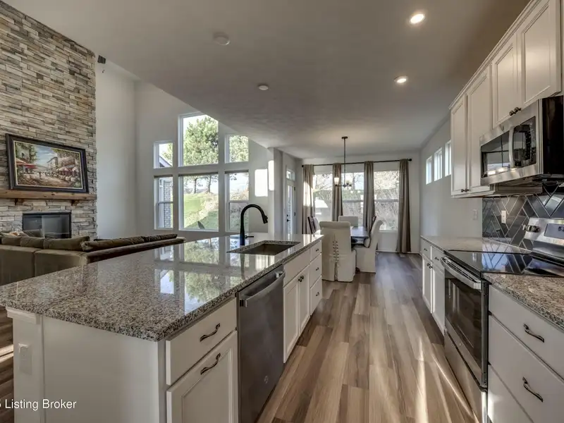 - Chef's kitchen with granite island, stainless appliances
