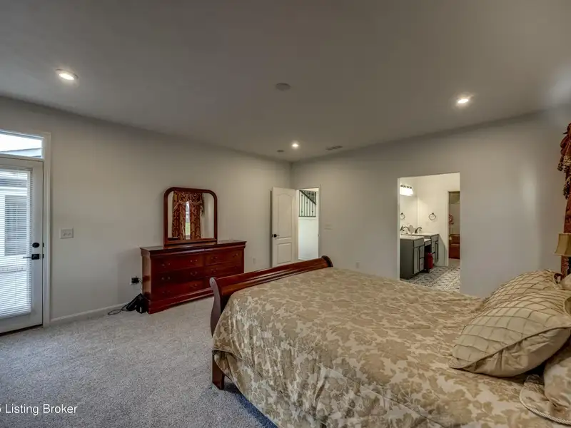 - First-floor primary suite with private patio access