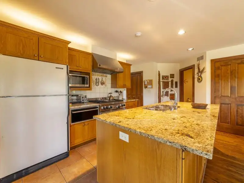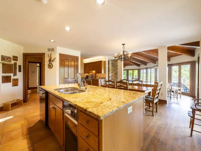 - Open-concept kitchen with granite countertops