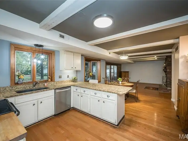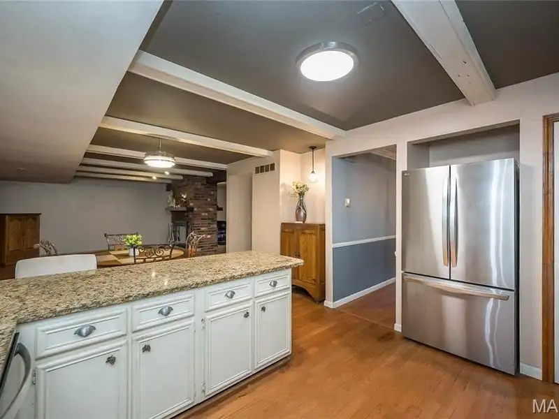 - Granite countertops in kitchen