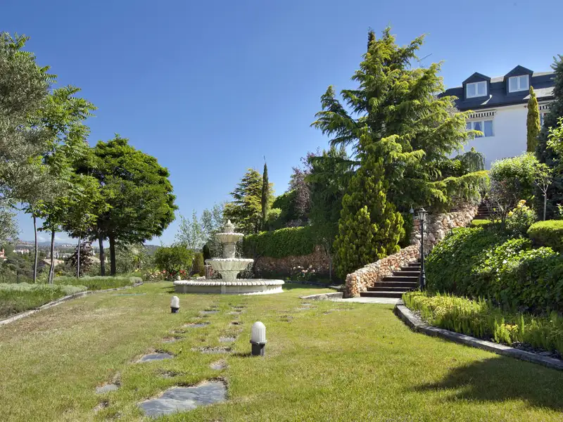 The garden is well kept and consolidated on different levels, it also offers a great variety of plants, making it very private. There you can also find an air conditioned glass pavilion, where you can enjoy the garden during any season of the year, as well as a large barbecue, ideal for the summer months. The garden is rounded up by an outdoor shower with stone walls, ideal to take a refreshing shower without having to go back inside, as well as two fountains, one of which is afforded with tiles from Talavera de la Reina.