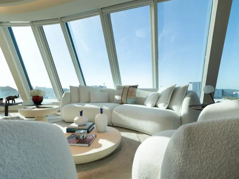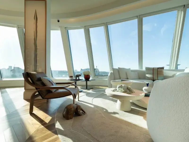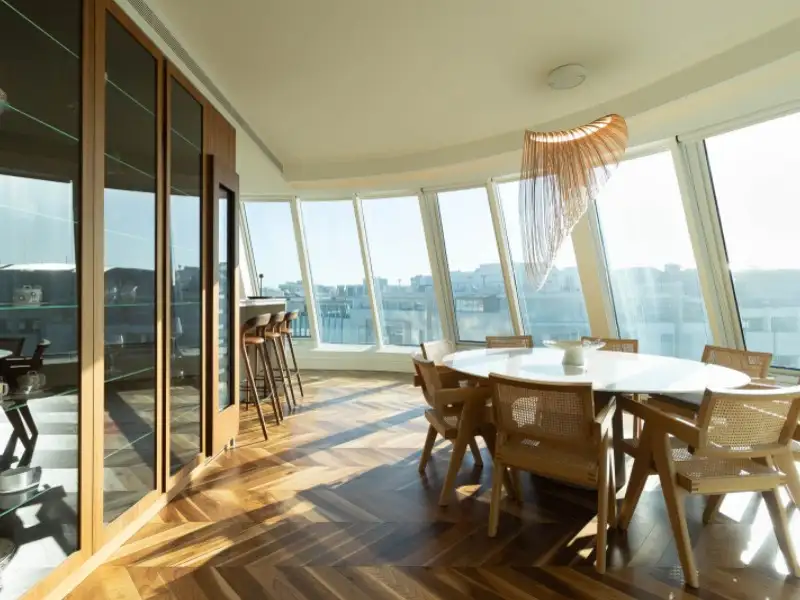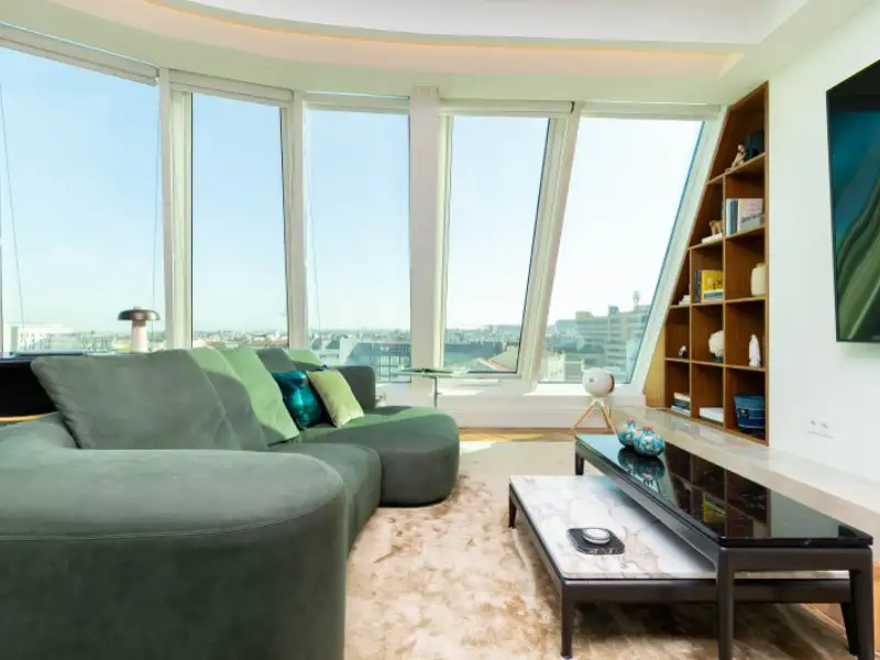 - Spacious 65 m² glass-paneled living room