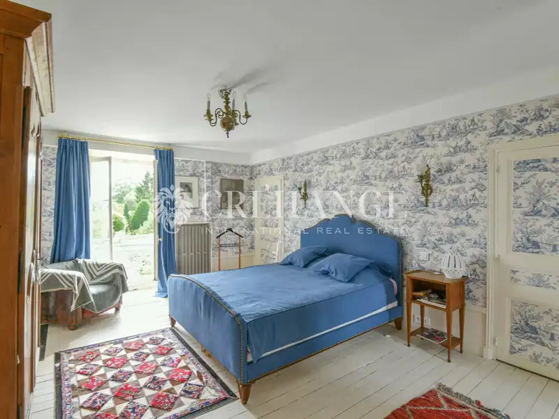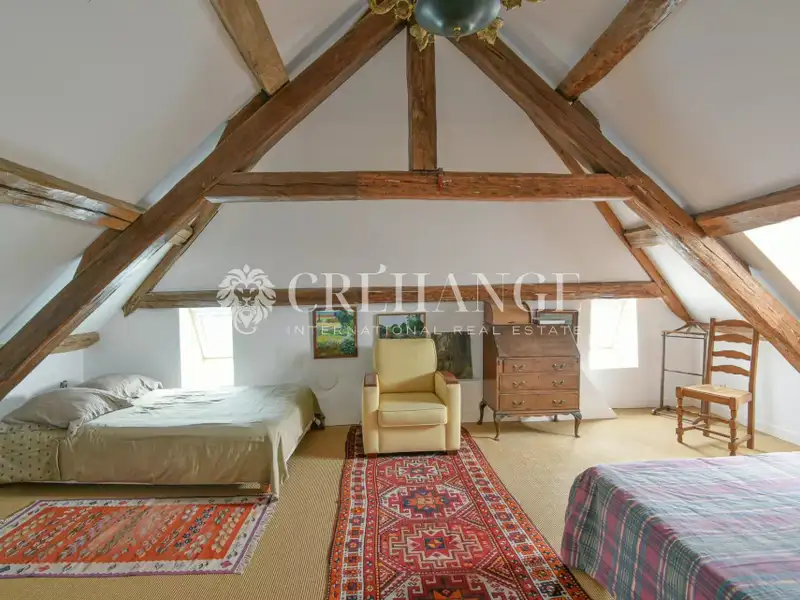 VAL D’OISE (95) – Charming property 40 km from Paris. Located in the Sausseron valley, within the Vexin Français Regional Natural Park, 17km from Isle-Adam, this splendid residence built in 1850, renovated and tastefully decorated, offers a very pleasant living environment and benefits from the calm of nature with a wood and a pond below the house. Its spacious volumes and numerous bedrooms and bathrooms make it an ideal home for family life, beautiful receptions or a professional project to develop. The main house of 20 rooms (including 12 bedrooms) on 6 levels, includes: - On the ground floor: an entrance hall, a vestibule with stone fireplace, a living room with fireplace, a dining room, an equipped kitchen, toilets, an office or lounge bar with fireplace and an opening living room on the garden leading to a terrace, - On the 1st floor: 5 bedrooms, an office, 2 bathrooms, 3 toilets, - On the 2nd floor: 3 bedrooms, 1 living room, 2 bathrooms, 2 toilets - Converted attic: 1 bedroom, 1 living room, 1 bathroom, 1 toilet - Garden level at the back of the house: 1 living room, - Basement: a part with 2 cellars and the boiler room, and a part fitted out with 2 bedrooms, 1 bathroom, 1 toilet, opening onto a courtyard and connected to the garden level. Independent apartment possible. Burgundy stone floors, Hungarian point parquet floors, wooden frames, double-glazed windows, high ceilings, ceilings with moldings, woodwork, renovation in 2019 and new roof in 2021/22. Oil heating/heat pump. Added to the property: - An outbuilding, at the entrance to the property, comprising 3 rooms on 2 levels: 1 living room, 2 bedrooms, 1 bathroom, 1 toilet, work required. - Several annex buildings: a workshop (former wash house, bread oven) with cellar, a carport for 1 car, a gardening shed, a kennel, 12 horse boxes, parking for a dozen cars. 14km ​​from Cergy-le Haut station: RER A Direct 42 minutes from Etoile or Line L Direct 51 minutes from St Lazare. 15 minutes from Pontoise by car. 50 minutes from Roissy airport. This home offers all the comfort and space necessary for family or professional use. Possible divisions. Do not hesitate to contact me to arrange a visit. Information on the risks to which this property is exposed is available on the Géorisks website https://www.georisks.gouv.fr