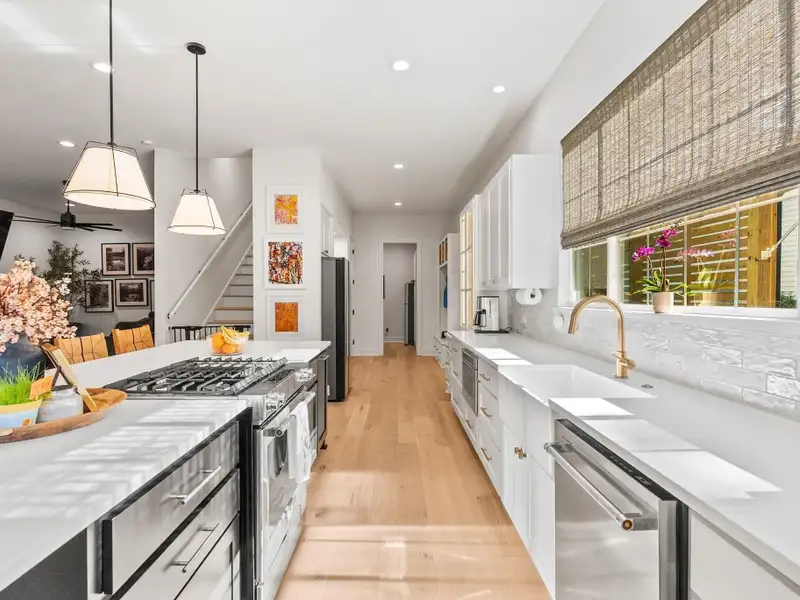 - Chef's kitchen with gas cooktop and farmhouse sink