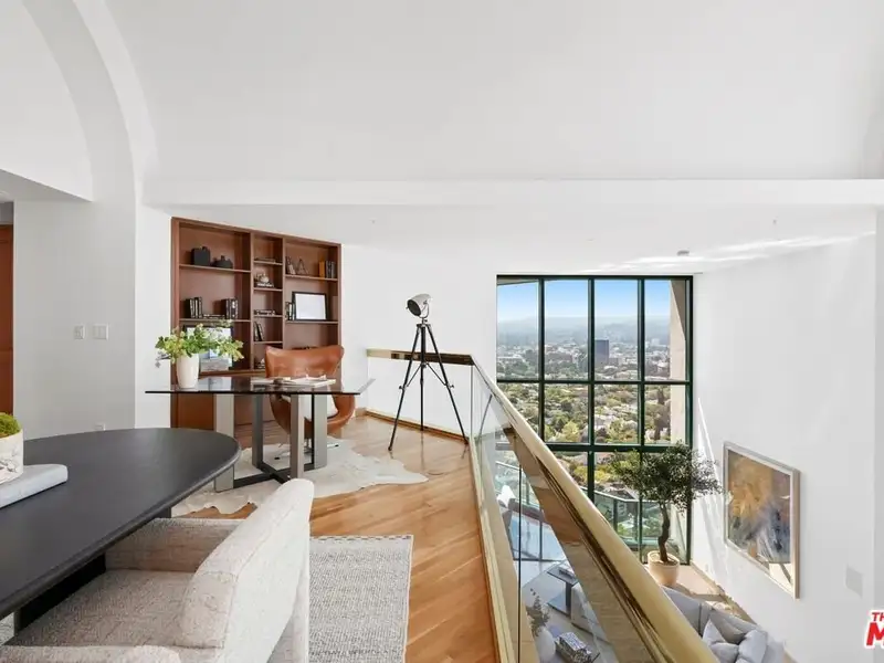 **Rare Penthouse at The Blair House -The Pinnacle of Wilshire Corridor Living** Perched atop the iconic Blair House, one of the most prestigious full-service addresses on the Wilshire Corridor, this rare penthouse offering blends dramatic design, contemporary elegance, and sweeping panoramic views into a truly unforgettable residence. Step into the striking formal entry where a sculptural spiral staircase introduces you to soaring 25-foot ceilings and vast, floor-to-ceiling windows that flood the living space with natural light. From the Griffith Observatory to The Getty and beyond, nearly every room offers unobstructed, picture-perfect views. The expansive living room seamlessly extends to a private balcony an ideal backdrop for indoor-outdoor entertaining. A formal dining room comfortably seats 12+ with inspiring vistas toward the Hollywood Hills and Downtown Los Angeles. A stylish den with built-in wet bar creates an inviting space for intimate evenings or movie nights. The newly renovated chef's kitchen boasts premium appliances, sleek cabinetry, and an adjacent breakfast area offering tranquil morning views. A private en-suite guest room sits quietly on the main floor, providing comfort and separation. Upstairs, access the second level via your own in-unit elevator to discover three spacious bedroom suites and an airy loft lounge or home office, all oriented to capture dramatic skyline scenes. The primary suite is a luxurious retreat with a private sitting area, balcony, and an indulgent, spa-inspired bath. Dual bathrooms offer a sauna, soaking tub, oversized shower, vanity area, and separate walk-in closets. An attached gym or office completes the suite, surrounded by floor-to-ceiling views. Additional highlights include:- Smart home integration with new AV system, high-speed Wi-Fi, security upgrades - Modern designer lighting throughout - Ample in-unit storage and closet space Residents of The Blair House enjoy five-star amenities: a resort-style pool and spa, rare tennis court, cutting-edge fitness center, meeting suite, 24-hour valet and concierge, and round-the-clock security, an unmatched lifestyle in one of LA's most desirable high-rise communities.
