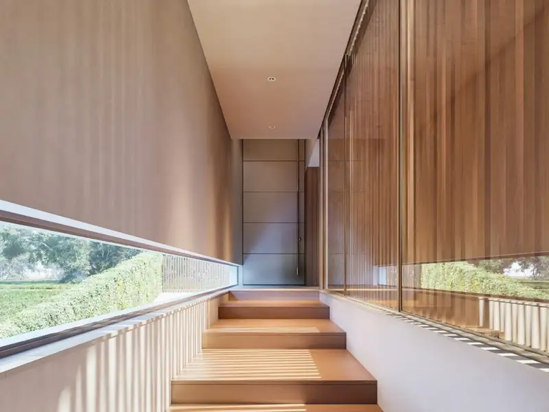 On the lower floor are the five grand bedrooms, all with en-suite bathrooms and walk-in closets. The rooms, with their soft colors, are a haven of privacy, with extraordinary views of the lush garden. On this floor there is also an equipped gym, a multipurpose room that can be used as a games room or cinema room, a laundry room and a garage for one car.