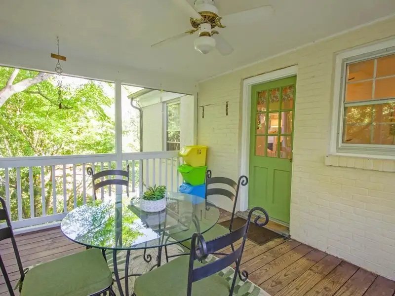 - Screened porch overlooking fenced yard