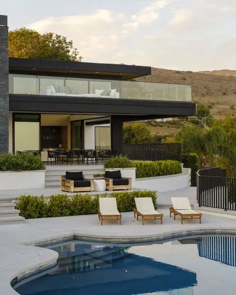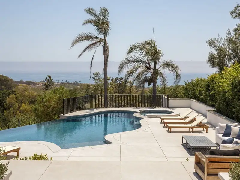 - Infinity-edge pool with waterfall and hot tub