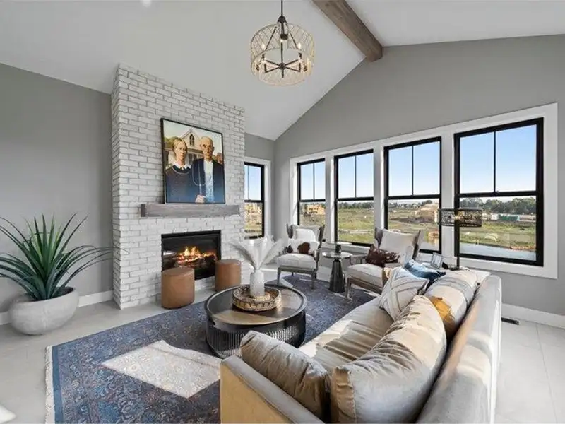 - Four-season porch with stone fireplace