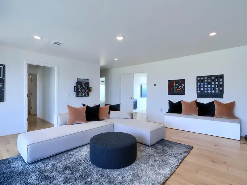 - Custom wide plank wood flooring