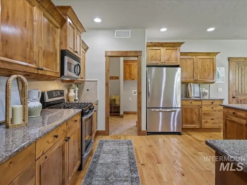 - Granite counters and stainless steel kitchen appliances