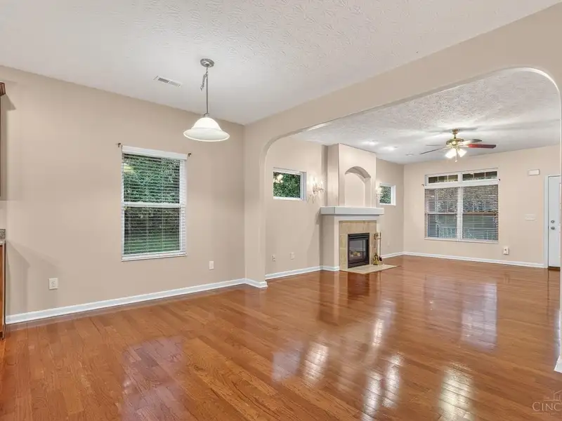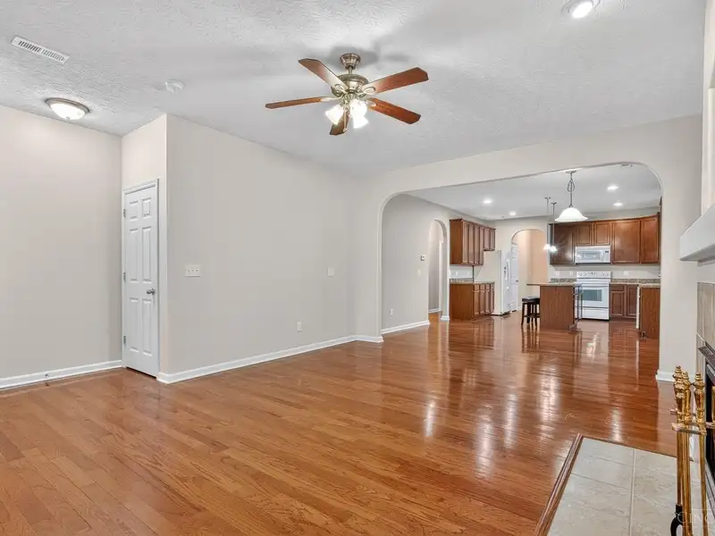 - Open floor plan with hardwood floors