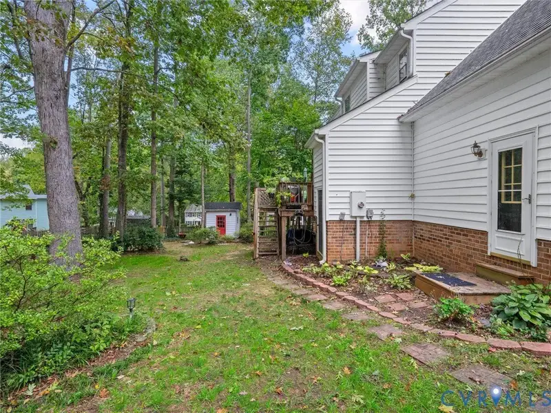 - Large fenced backyard with deck