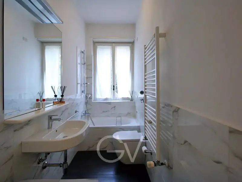 In an elegant stately building surrounded by greenery, a 167sqm stately dwelling develops itself on the first floor and conquers for the quietness, the light and the extraordinary well-kept context. The apartment opens onto a large and suitable entrance that leads to the welcoming double living room overlooking the beautiful charming residential street, lined with high trees that give privacy and a pleasant natural atmosphere. The habitable kitchen, complete with furnishings and appliances, overlooks directly onto the balcony facing the splendid condominium garden: an authentic oases of relaxation in the heart of the city, lush, silent, in a rare location, perfect to regenerate, reading in the shade of the trees or enjoying moments in the open air in a protected and private environment. The night area is composed of two large master bedrooms one of which has a balcony, a studio or third room and two windowed bathrooms, both renovated, one with tub and the other one with tub and a separate shower. The spaces outside the rooms for the wardrobes are comfortable: a large closet/utility room for one and a disengagement lined with comfortable wardrobes for the other. To complete a cellar. The apartment will be available starting from october and is rented with an equipped kitchen, complete bathrooms and some wardrobes. Centralized heating. The apartment has all day concierge service and lift and is located in one of the most sought after areas of the city, between Buonarroti, Citylife and Pagano, a refined residential and well-served neighborhood. A few steps from Subway MM1 (Wagner and Buonarroti stops), MM5 Tre Torri, trams 16 and 19, the beautiful Citylife Park and highway entrances. Contracts with primary companies are allowed. Class G – 247,2.
