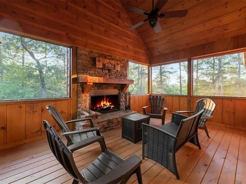 - Screened-in porch for outdoor comfort