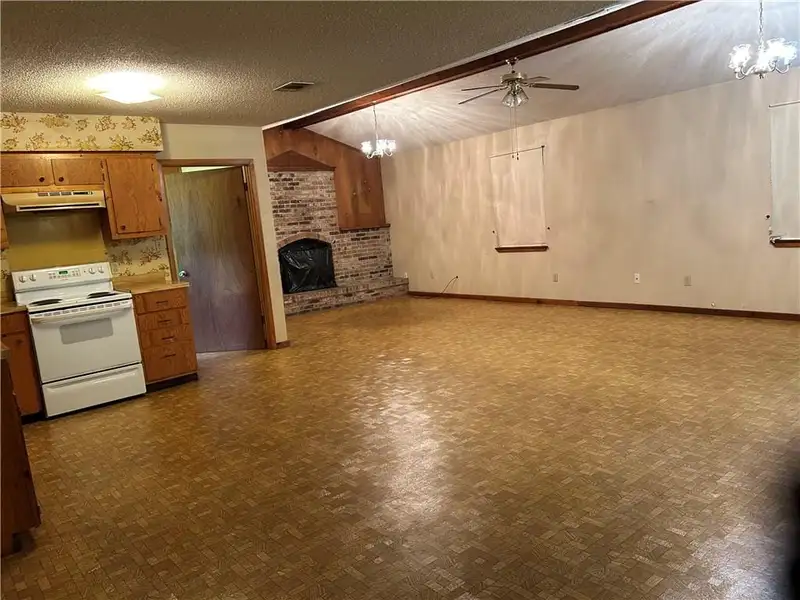 - Open great room with cathedral ceiling
