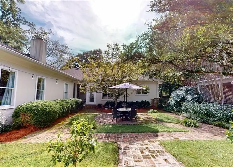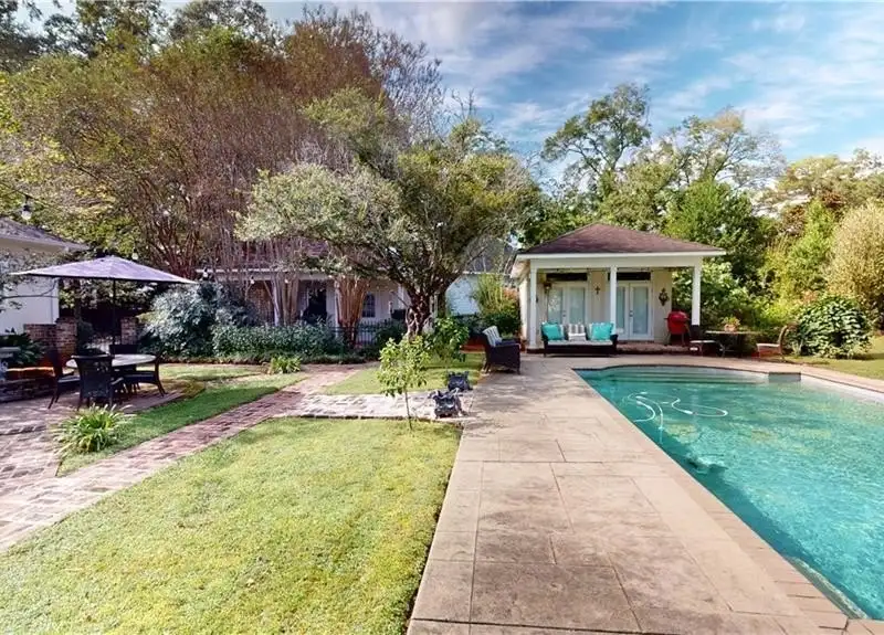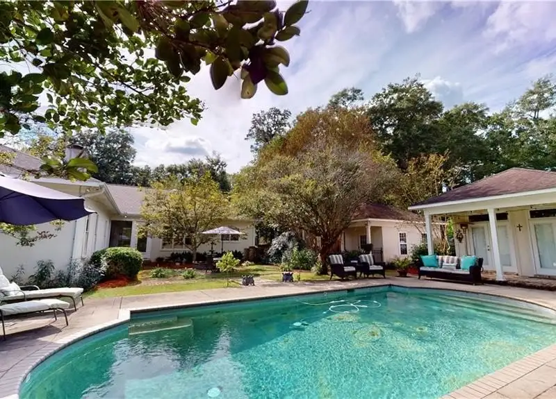 Outdoors, the property offers ample parking, a single carport, fenced back yard, storage room, gunite pool, and pool cabana with bath. Brick pathways, a pretty fountain, and mature landscaping—including lovely estate camellias—complete the picture of this truly special Spring Hill retreat.