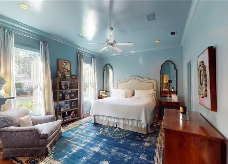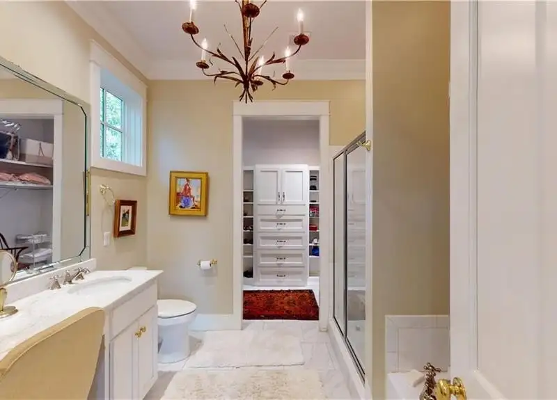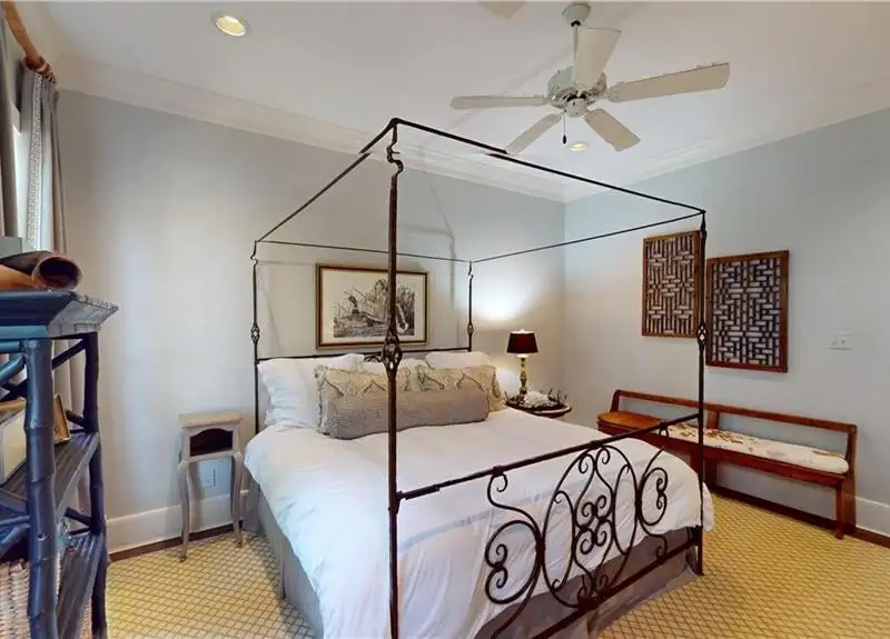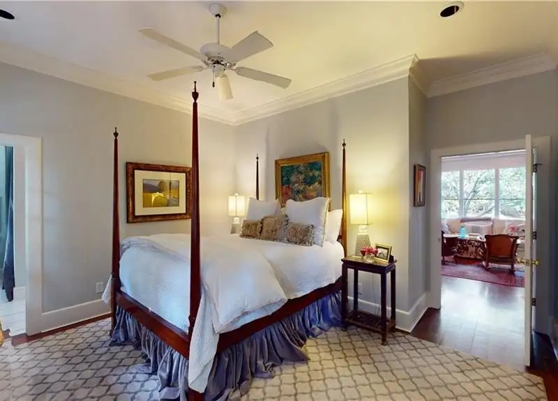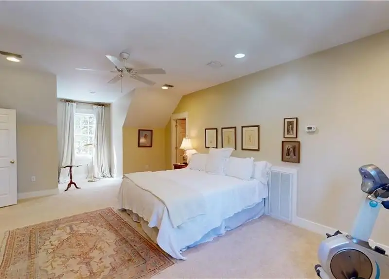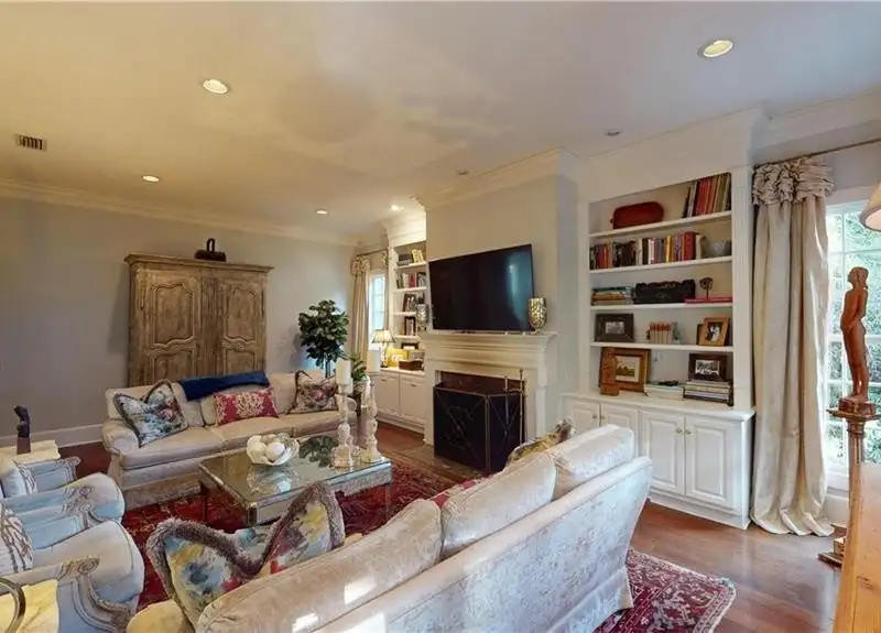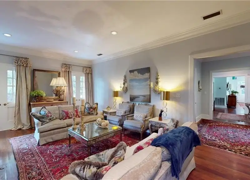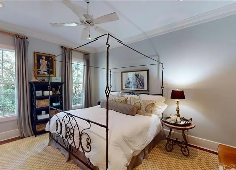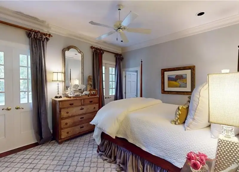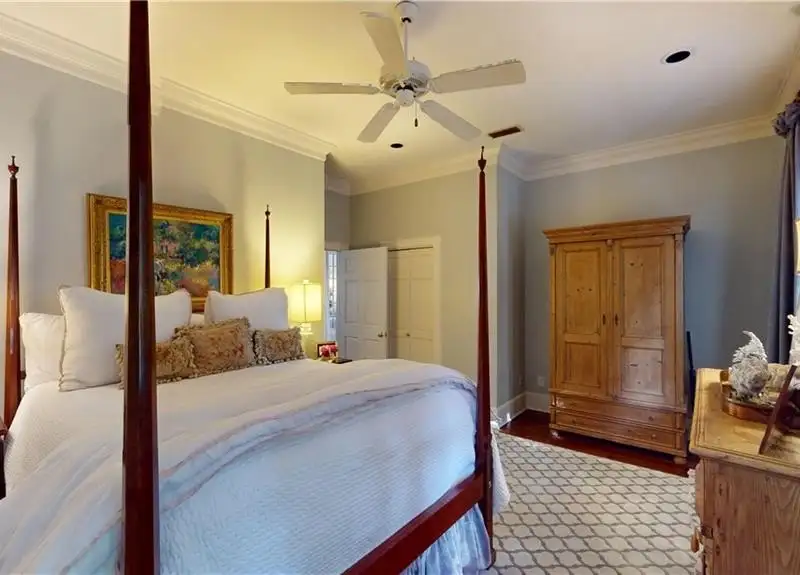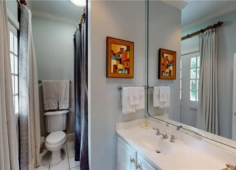 The guest house, built in 2016, is equally impressive. With a Federal-style design and concrete board exterior, it offers 10-foot ceilings, heart pine floors, and a gas log fireplace. Built on a slab foundation, the home is as solid as it is charming. Sunlight pours through the large picture window, creating a welcoming atmosphere.