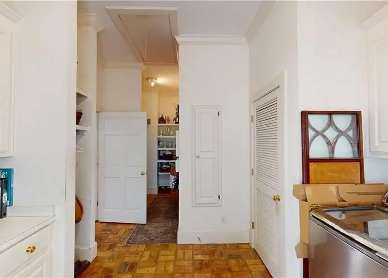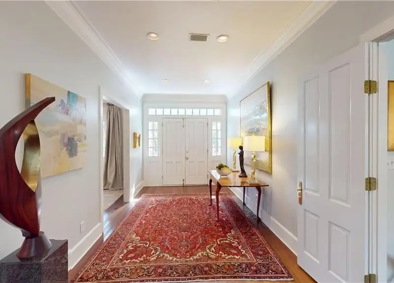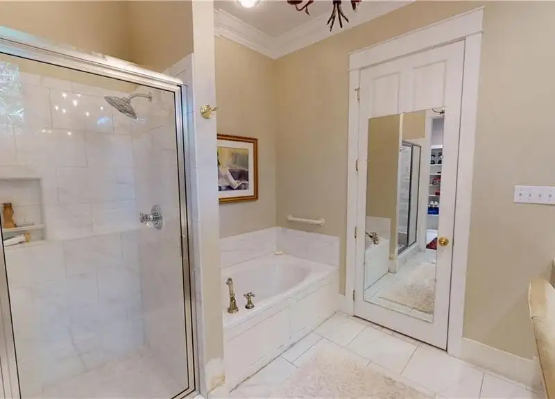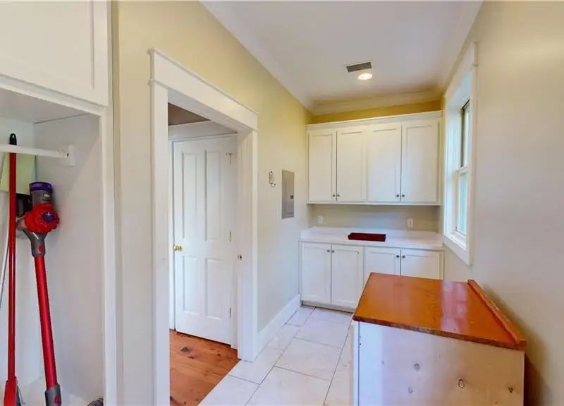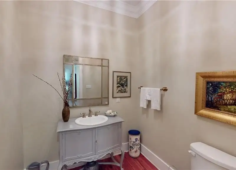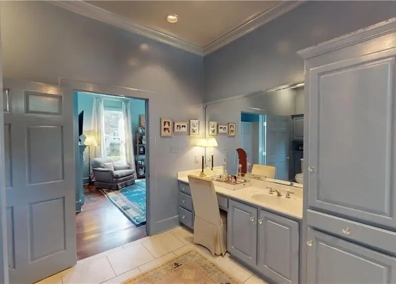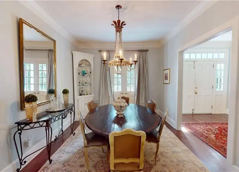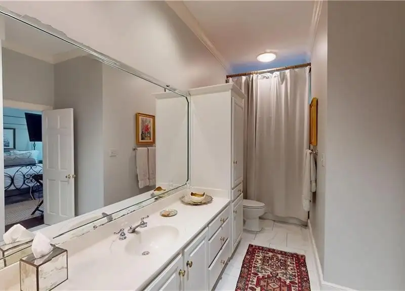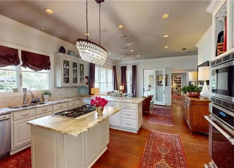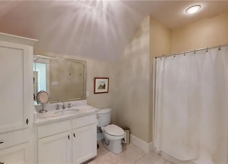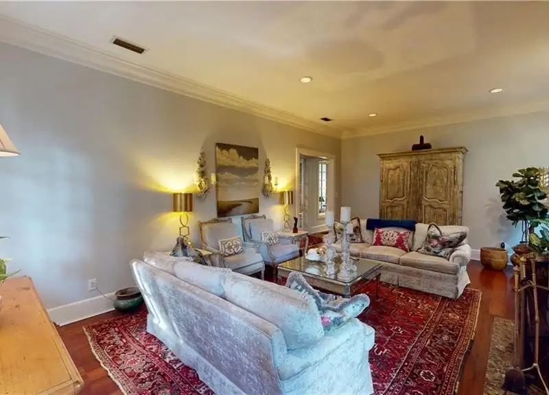 The guest house, built in 2016, is equally impressive. With a Federal-style design and concrete board exterior, it offers 10-foot ceilings, heart pine floors, and a gas log fireplace. Built on a slab foundation, the home is as solid as it is charming. Sunlight pours through the large picture window, creating a welcoming atmosphere.