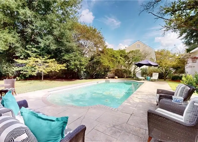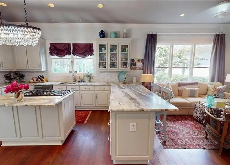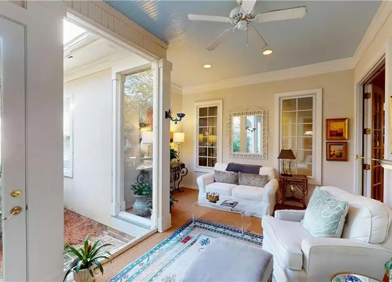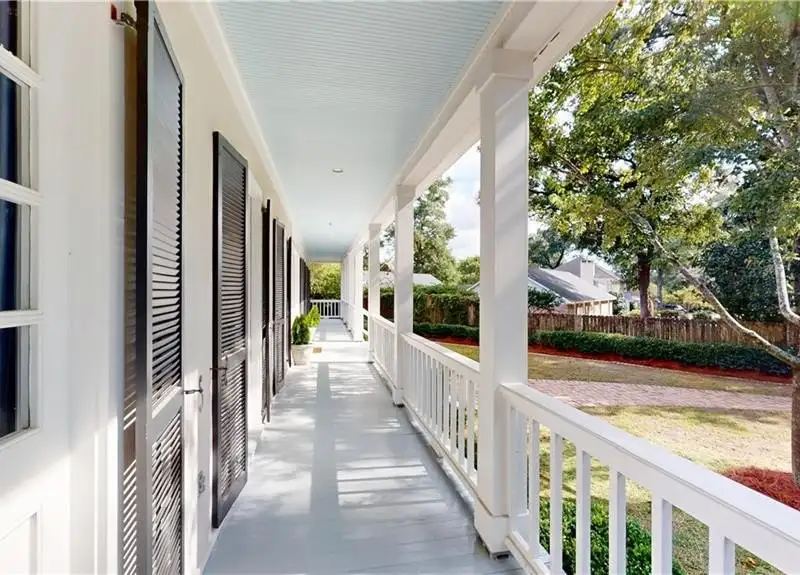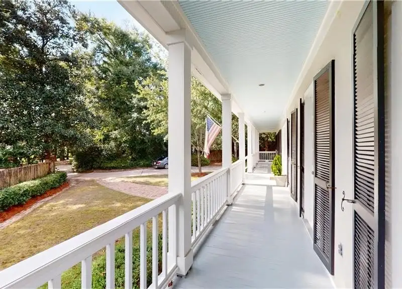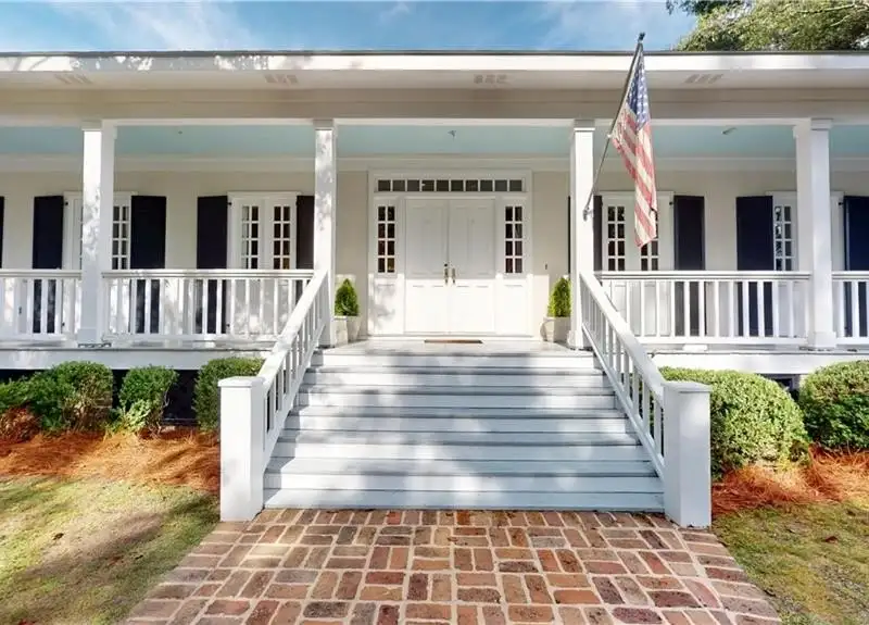 The primary home, built in 1994, offers 3,249 square feet per appraisal and features 3 bedrooms and 3 baths. Built on piers, the home showcases tall ceilings, Brazilian hardwood floors, and stunning architectural elements. A sweeping front porch lined with French doors welcomes you inside to a gracious foyer with a view through the home. The foyer is flanked by a lovely dining room and opens into an inviting open-concept kitchen and keeping room.