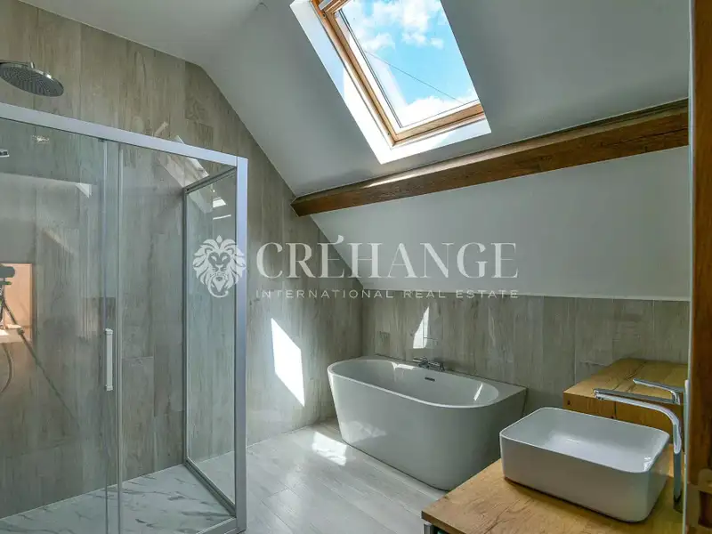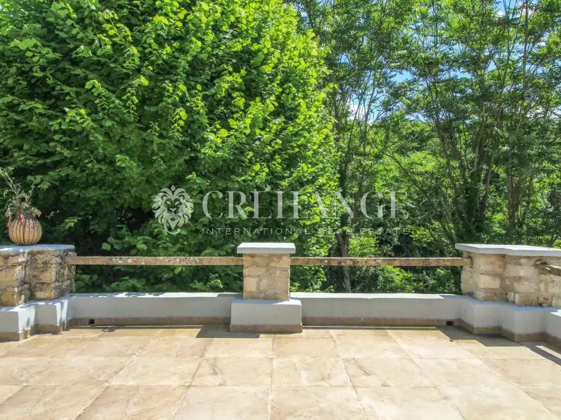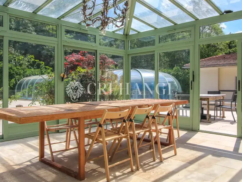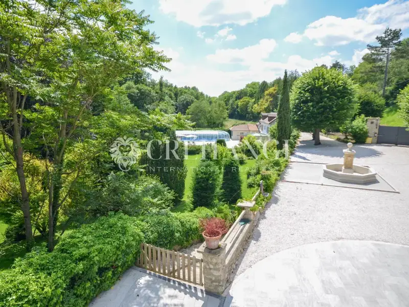 Are you looking for an exceptional property less than an hour from Paris in an idyllic, unoverlooked green setting in one of the most beautiful regions of Ile de France? Then take a look at this property, located at the entrance to a well-known and highly sought-after village in the Yvelines. It is set in 4722m² of landscaped parklands with century-old trees and a 6.5-hectare private forest, and includes a stone Maison de Maître entirely renovated with quality materials and refined choices, and a second house with swimming pool. The 230m² stone house offers 6 main rooms on 2 levels with, on the first floor, an entrance hall with a 40m² fully fitted kitchen equipped with top-of-the-range appliances, a dining room with panoramic views over the park and a 56m² reception room. Upstairs, the sleeping area includes a mezzanine that could be converted into an office, a master suite with its own terrace and bathroom with bath, shower and toilet. Two further bedrooms with their own bathroom and separate toilet. The attic is suitable for conversion. A laundry room and wine cellar are located in the basement. Fittings: automatic gate, intercom, alarm with camera, heat pump heating, triple-glazed iron frames. The 180m² second house offers 5 main rooms on 3 levels: First floor: living room with fireplace, kitchen, separate bedroom with shower room and veranda opening onto the pool. 1st floor: two bedrooms sharing a bathroom and a master suite with shower room and toilet. The attic has been converted into 3 small bedrooms or a games room. An annex connected to the house includes a SPA with sauna and hammam, toilets and a machine room. The house has a large swimming pool under removable cover, with a solarium all around. Less than an hour from Paris via the A13/A14 motorways and the J line to Paris Saint Lazare, which is a 10-minute drive from Bréval. Information on the risks to which this property is exposed is available on the Géorisques website https://www.georisques.gouv.fr
