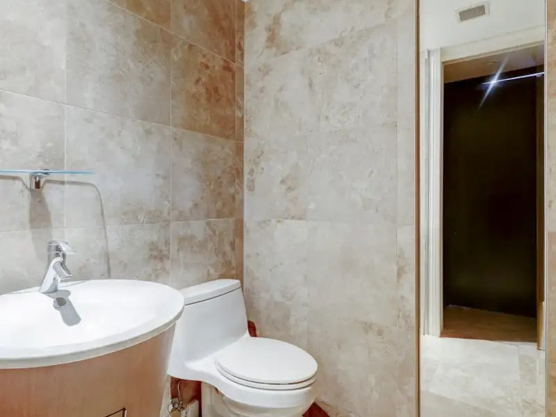 - Herringbone wood and marble floors