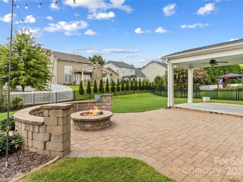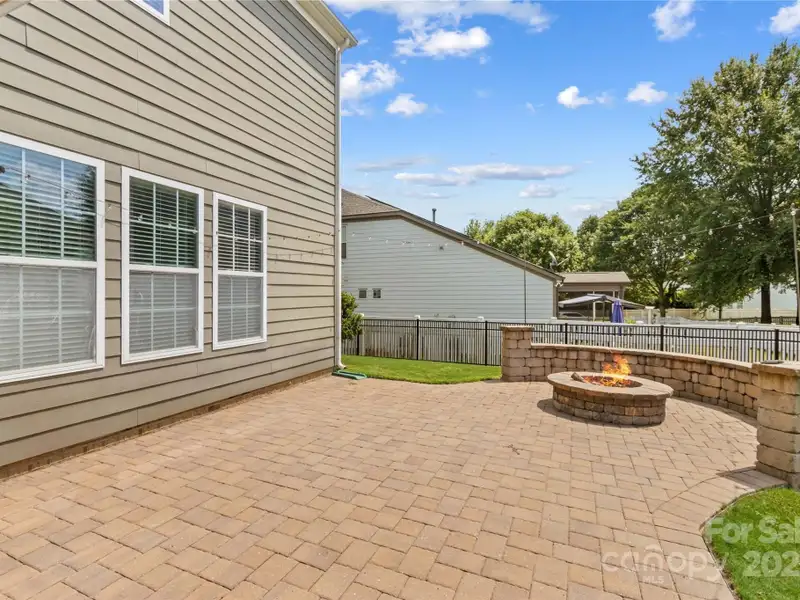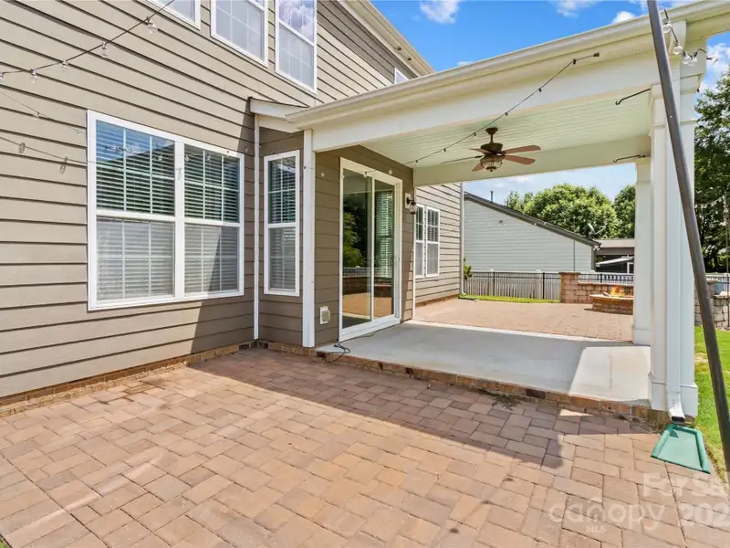 - Covered rear terrace with fire pit