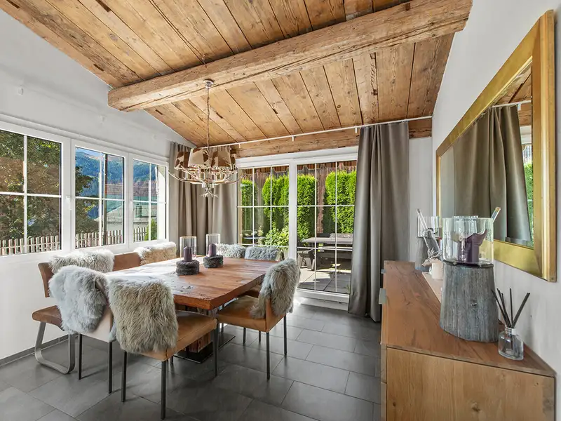 This charming, detached house in Muldain enjoys a privileged hillside position boasting unobstructed panoramic views extending southwards towards the Oberhalbstein valley. Tucked away in a quiet location and far removed from passing traffic, it is reached via a small private access road, ensuring privacy within a traditional setting with a low density of development. At the same time, Lenzerheide is only a few minutes away by car or bus. The main residence is arranged over two floors and has immediate appeal with its well-conceived layout. Three adaptable rooms, a generously proportioned living area and a modern bathroom with bath, shower and window provide ample space and comfort. A particular highlight is the stylish dining room extension, added in 2003 as part of a comprehensive refurbishment. The use of reclaimed timber from a former barn imbues the living area with a warm, characterful ambience. The adjoining kitchen is functional and equipped with a glass-ceramic hob, oven, steamer, dishwasher, fridge, and wine cooler. The accommodation is complemented by two separate 2.5-room flats. Both enjoy their own balconies and are currently let – offering either an attractive source of rental income or space for guests. The outdoor areas have been laid out for easy maintenance. The terraced garden provides a variety of secluded spots to retreat to under open skies, ideal for relaxation and sunbathing. The property also includes one outdoor parking space and a carport with two covered parking spaces. The property: - 4.5-room detached house with panoramic views - Approx. 258m² of living space - Approx. 540m² plot - 2 self-contained flats (each with 2.5 rooms) - Generous, low-maintenance outdoor areas - Beautiful, unobstructed views - Sunshine throughout the day - Excellent, quiet location - 1 outdoor parking space - 2 covered carport spaces