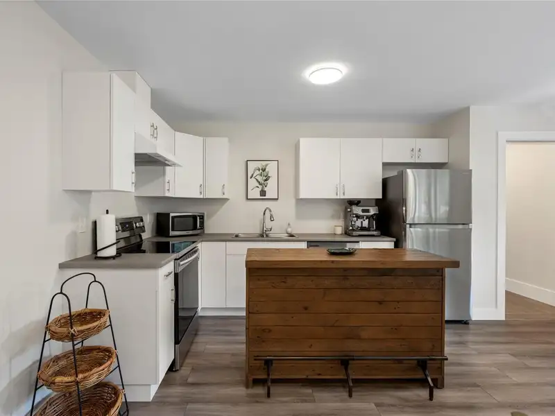 - Large quartz island kitchen