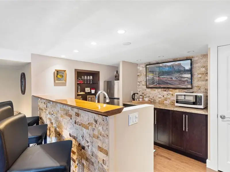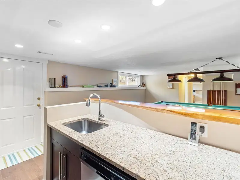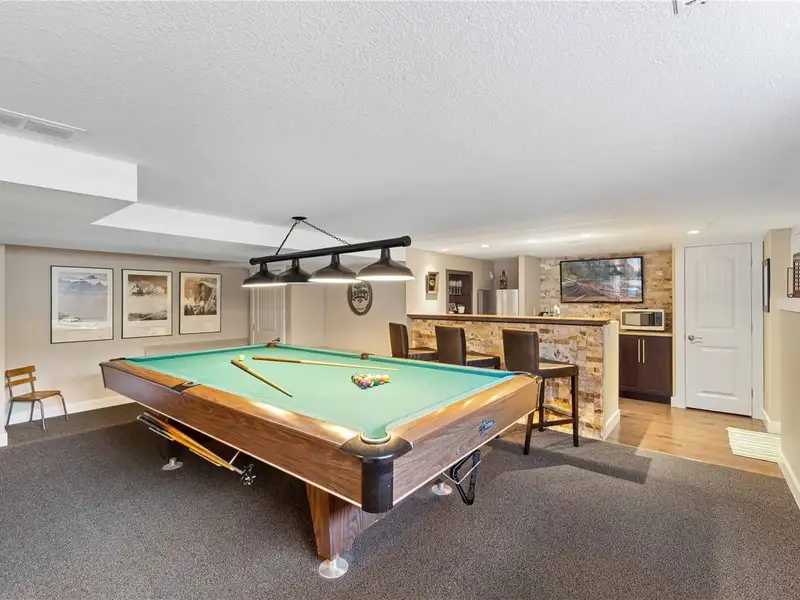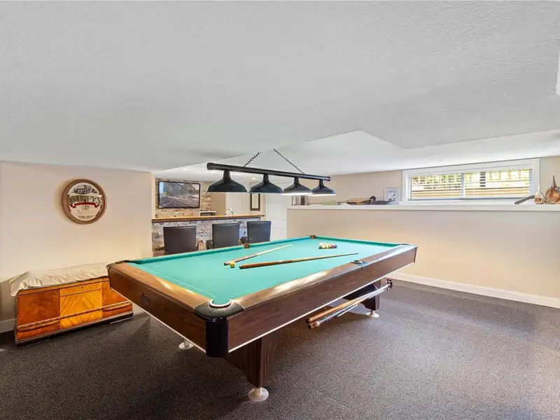 The lower level offers a kitchen/bar area & entertainment room including a pool table, plus suite potential with a separate exterior access, bedroom, and bathroom - ideal for guests & family.