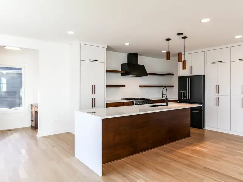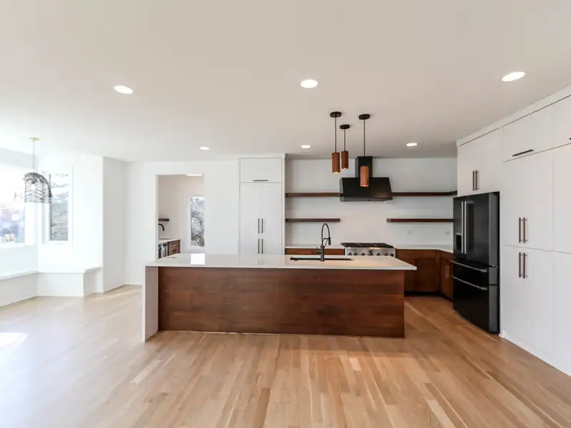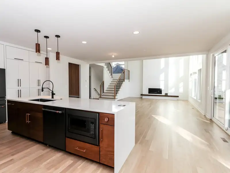 - Open layout with oversized kitchen island