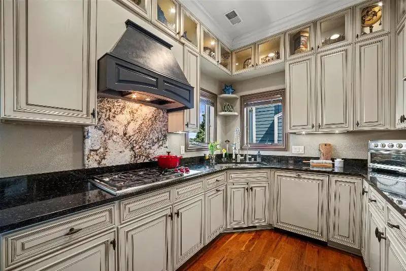 - Kitchen with custom cabinets and updated appliances