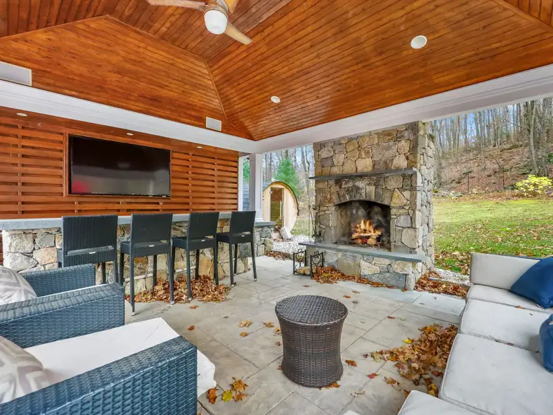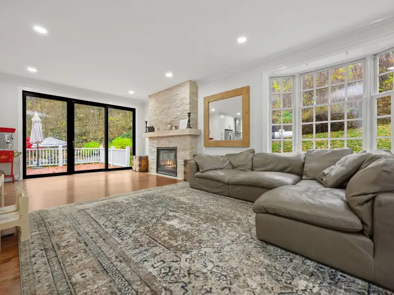 Stunning Renovated Colonial Retreat with Heated Pool & Cabana! Welcome to 3 Alexandra Drive, a beautifully renovated white Colonial tucked away on a private lot in one of New Fairfield's most desirable neighborhoods. This home perfectly blends classic charm with modern luxury, offering all the amenities you've been dreaming of! Step inside to a bright, inviting interior featuring a sophisticated color palette and thoughtful updates throughout. The renovated kitchen boasts stainless steel appliances, a center island with seating, and opens seamlessly to the family room with a cozy gas fireplace and an 8' slider leading to the expansive back deck-ideal for indoor-outdoor living. The dining room with French doors provides the perfect setting for formal gatherings, while the mudroom entry includes laundry and a convenient powder room. Upstairs, the primary suite impresses with two walk-in closets and a stunning spa-like bathroom. Two additional spacious bedrooms and a stylish full bath complete the upper level. The finished lower level offers a versatile den/rec room with a custom dry bar and built-ins. Step outside to your private backyard oasis designed for entertaining: an expansive deck and patio area, heated pool, outdoor cabana with fireplace and TV, and a luxurious outdoor sauna. This property truly has it all-comfort, style, and resort-like living right at home. Additional features include a 2-car garage, professional landscaping, all while being close for commuting.
