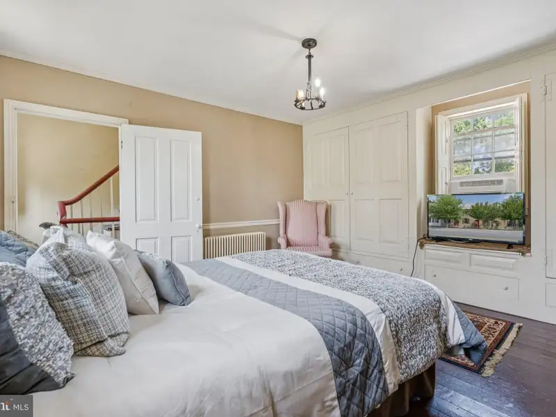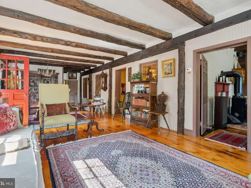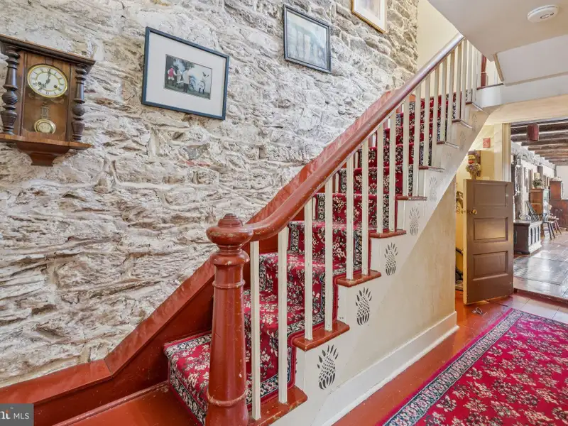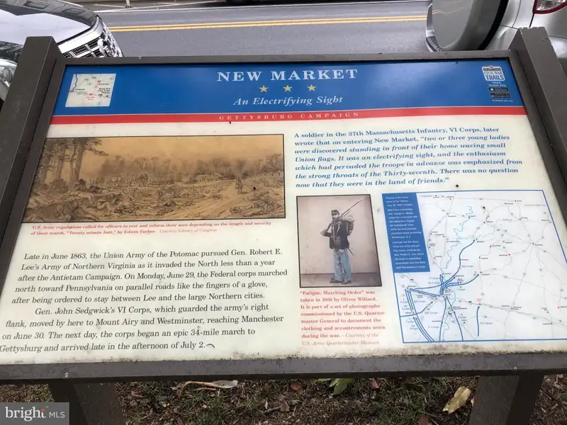 Welcome to 25 West Main Street, a unique and historic property in the heart of New Market, Maryland. Built in 1793, this beautifully preserved Federal-style stone residence-known as the John Morris Prosser House-is the only stone home in town and offers a rare opportunity to own a significant piece of Maryland's history. Set on a meticulously landscaped half-acre lot, the property blends 18th-century elegance with modern comfort and functionality. Zoned for both residential and commercial use, it offers endless potential for a variety of lifestyle or business ventures. Inside, the home offers approximately 4,064 square feet of finished living space across three levels, featuring five bedrooms, 3 full baths. The interiors are rich with character, showcasing original plaster and brick walls, exposed wood beams, moldings, and hardwood floors. The main level includes a formal living room with a fireplace and a custom-painted mural depicting New Market's history, a formal dining room, and an updated kitchen with stainless steel appliances, ample counters, a pantry, and the original brick fireplace. A sunroom/family room adds a bright, welcoming space with a wood-burning stove, an exit to the backyard, and a custom-built "catioa safe playhouse for cats. This room also offers built-in storage and a discreet washer and dryer. The main level grants access to a large unfinished stone basement, ideal for storage. Main-level rooms can serve as bedrooms, offices, studios, or fitness spaces. The adaptable layout suits work, relaxation, or hosting guests. Upstairs, the main house features a spacious primary suite with a bedroom, sitting or dressing area, an updated bath with tub and shower, built-in storage, and a private staircase. Another bedroom or study includes a fireplace. The upper landing has built-in bookcases and a cozy reading nook, with access to two unfinished attics, offering expansion potential. An attached secondary wing, added later, enhances flexibility with a private upper-level bedroom suite and oversized full bath. The main level includes a study or office with a wet bar and separate front and side entrances, ideal for guests, a home business, or rental use. Access to a large two-room attic provides further expansion possibilities. Modern systems, heating/cooling, public sewer, and well water ensure year-round comfort. Outdoors, the property impresses with a five-bay carriage house-imagine using it as an artist's studio, workshop, office, car storage, or gym. The fully fenced lot includes a second alley gate. A remarkably preserved two-level log cabin, estimated to be about 175 years old, stands alongside a historic smokehouse and original outhouse. Additional features include a pool changing room, chicken coop, treehouse, and a charming gazebo that invites relaxation in the garden setting. Outdoor living is further enhanced by a paved terrace and larger paver patio-perfect for entertaining or unwinding. The spacious backyard also includes an inviting inground pool and generous paved parking. Lovingly maintained and thoughtfully updated, the home retains its historic integrity while offering modern livability. Dual residential and commercial zoning provides incredible flexibility-ideal as a private residence, small business, bed and breakfast, or short-term rental. Full historical background and structural details are available. Just steps from New Market's shops, restaurants, and year-round events, this exceptional property combines historic charm, expansive living space, business potential, and walkable convenience. Whether your dream is a family home, boutique enterprise, or both, 25 West Main Street is a rare opportunity.