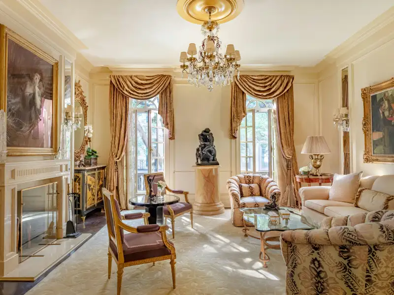 The townhouse is in excellent condition and offers coveted space for today's post covid lifestyle including 6 master bedrooms,7 baths, 4 powder rooms, two drawing rooms, library, formal dining room, two kitchens, media room, gym, home office, staff quarters, and outdoor space comprised of a terrace off the lower level, a charming walled terrace off the kitchen and a sunny top floor terrace with iconic views of Central Park, the Central Park West skyline, as well as sweeping south views over the city.