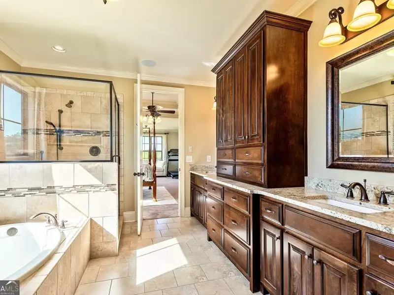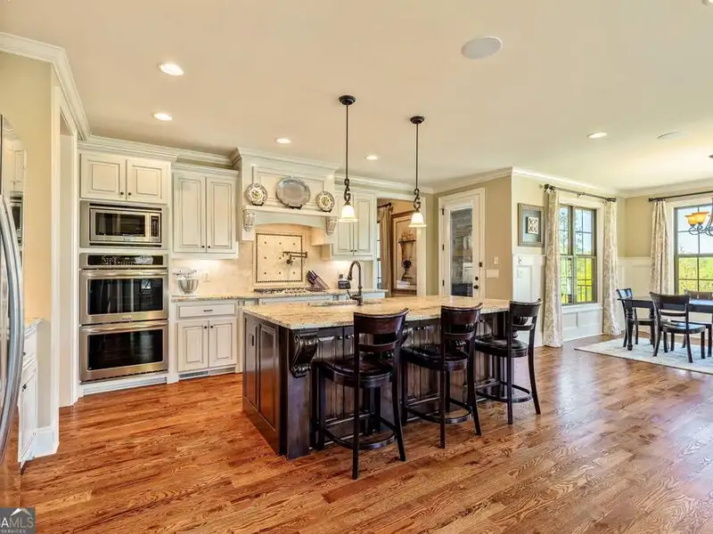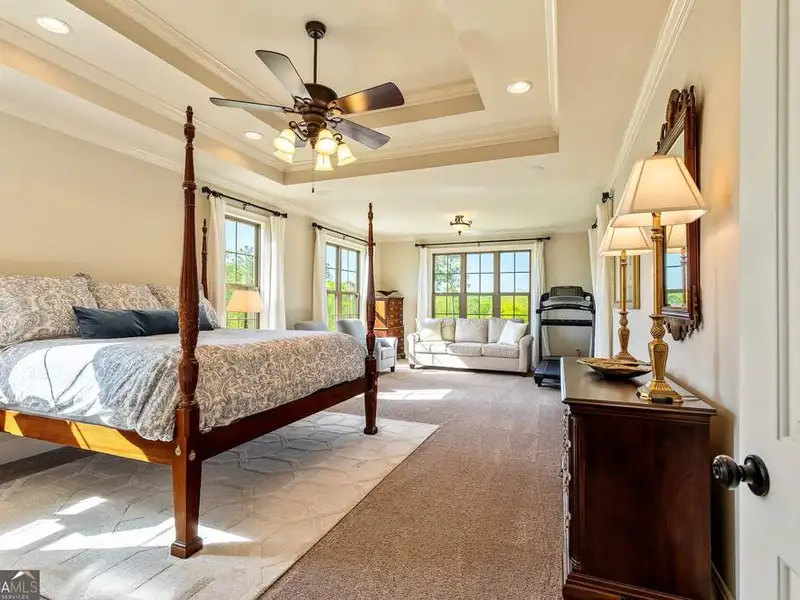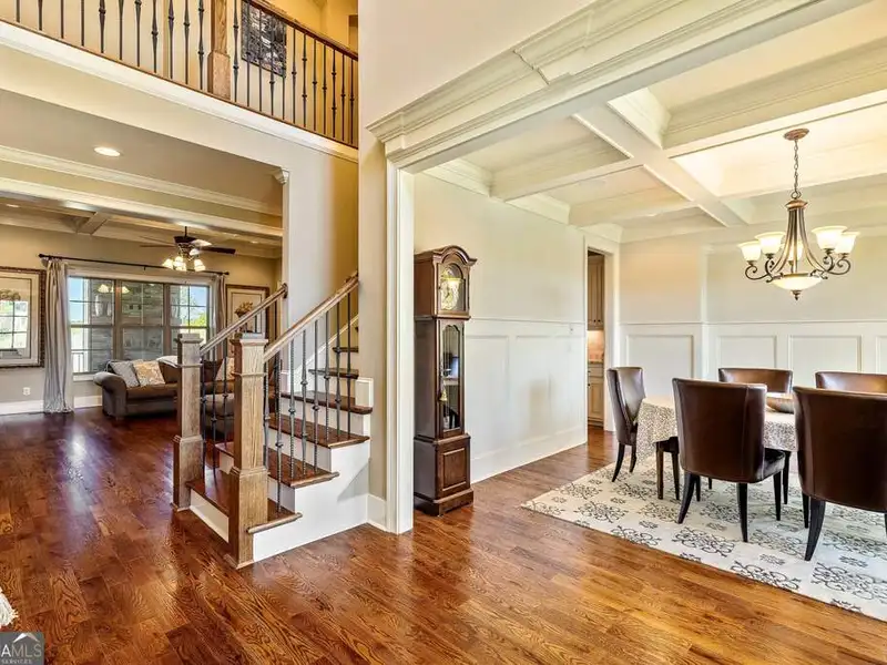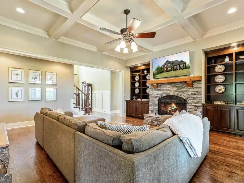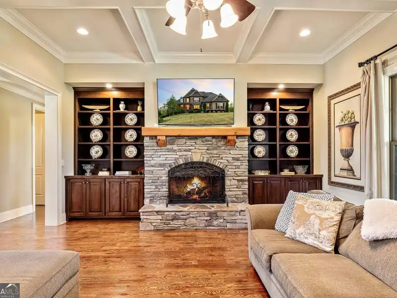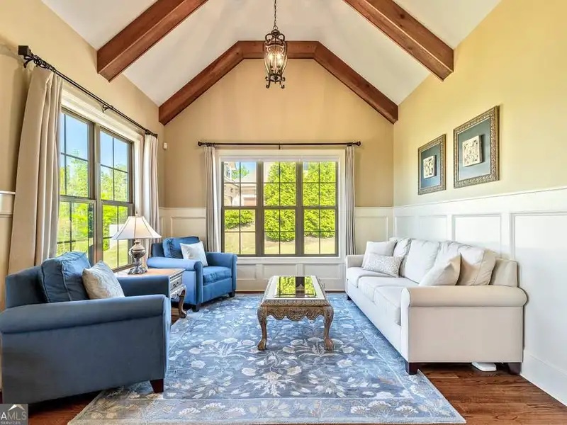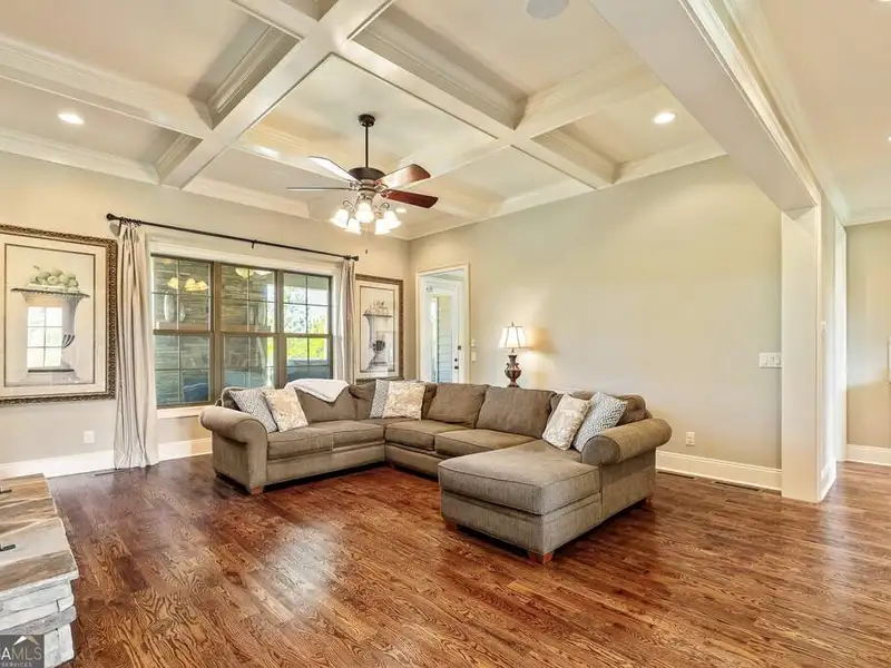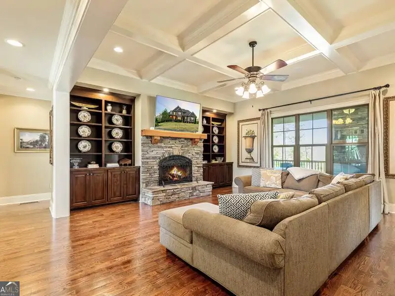 SELLER OFFERING 10K TOWARDS RATE BUY DOWN OR BUYER CLOSING COSTS! Welcome to 776 Arbor Springs Parkway, a stunning 6365 sq ft custom-built home nestled in the heart of Arbor Springs in Newnan, Georgia. Built in 2018, this home offers a seamless blend of refined Southern elegance and relaxed luxury. Meticulously maintained for the most discerning buyer, the home offers nearly 4,000 square feet of beautifully designed living space, including four spacious bedrooms and three and a half bathrooms. The left wing of the main level is dedicated to the serene primary suite and features a spa-like bath with soaking tub, separate shower, his and her sinks and an expansive double sided walk-in custom closet, perfect for organizing and showcasing your wardrobe in style. From the moment you arrive, you'll notice the signature details that define Frank Betz architecture-thoughtful trim work, rich wood tones, and an inviting covered front porch. Inside, soaring ceilings, gleaming hardwood floors, and oversized windows flood the space with natural light. The open-concept floorplan flows seamlessly into a gourmet kitchen, outfitted with leathered granite countertops, stainless steel appliances, custom cabinetry, double convection ovens, pot filler and a generous island perfect for gathering. Off the kitchen, a charming keeping room with cedar beamed vaulted ceiling creates an intimate space for relaxation or casual dining, offering a cozy inviting atmosphere. The family room and dining room boast coffered ceilings, built-in cabinets and a fantastic view onto the back yard and spacious deck. An additional 2,412-square-foot unfinished terrace level with walk-out access and generous windows invites natural light to pour in, offering endless possibilities for creating bright, expansive living spaces customized to your needs and ideal for a home theater, gym, in-law suite, or game room. Outdoor living is just as impressive, with a covered back porch featuring a stone fireplace with gas logs, perfect for enjoying cooler evenings surrounded by nature. The porch overlooks a peaceful one-acre lot framed by abundant nature offering wildlife viewing where deer, bunnies, and even the occasional visiting eagle make frequent appearances. A full irrigation system keeps the grounds lush, and a security system adds peace of mind. Located in the highly sought-after Arbor Springs community, residents enjoy access to a championship golf course, tennis and pickle ball courts, swimming pool, clubhouse, pavilion and scenic walking trails. Shopping and restaurants are only minutes away, making it easy to enjoy everything Newnan and Peachtree City have to offer. With just 22 minutes to Hartsfield-Jackson International Airport and quick access to I-85, Northgate schools, and more, this home offers an exceptional blend of luxury, lifestyle, and convenience.