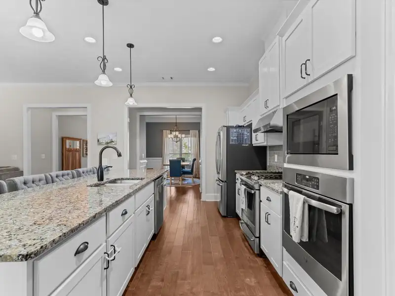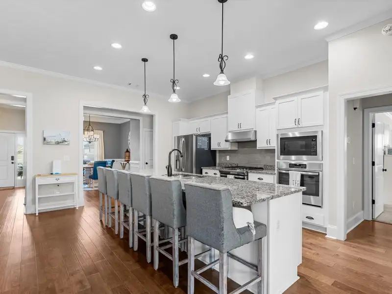 - Chef's kitchen with large island and three pantries