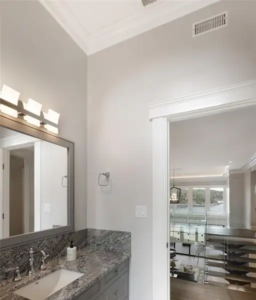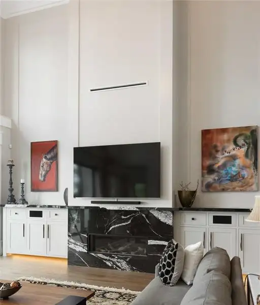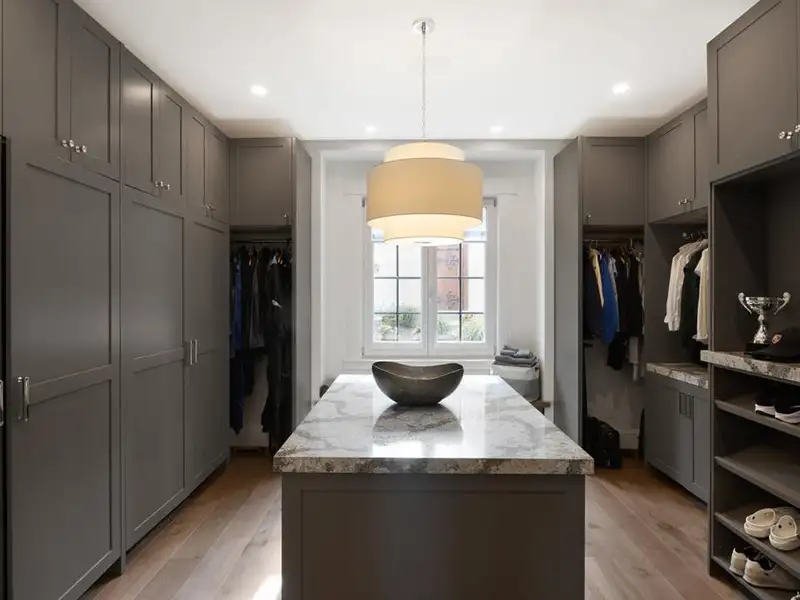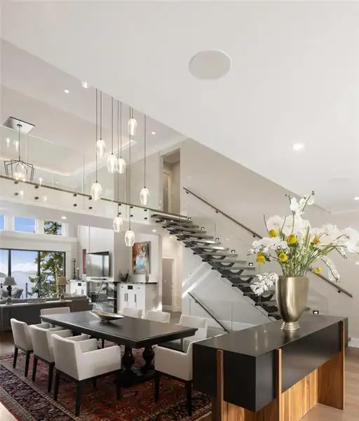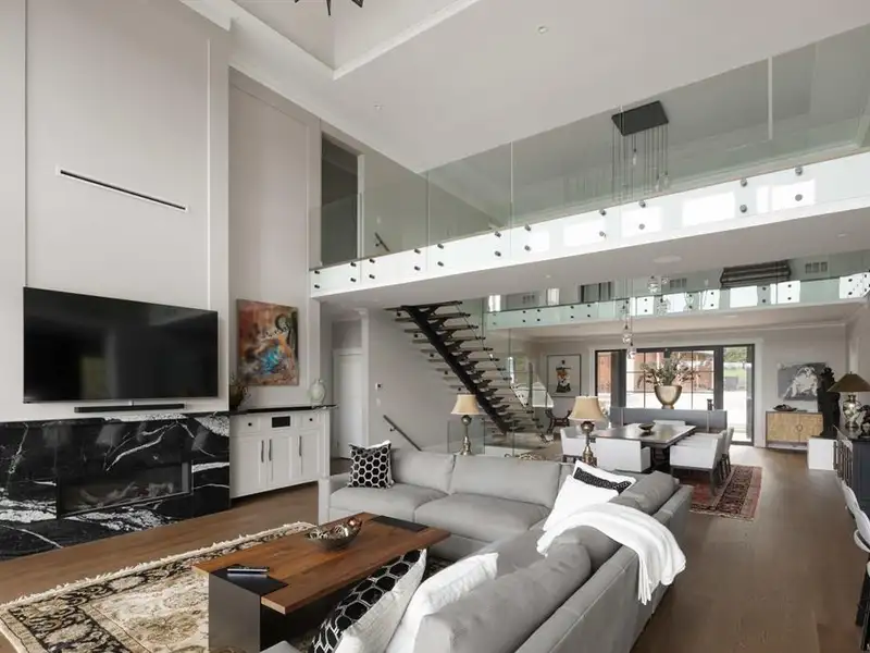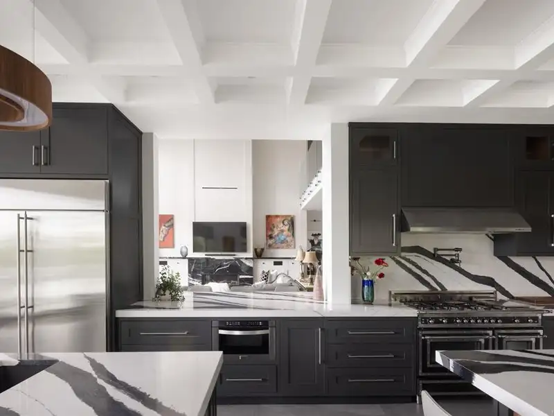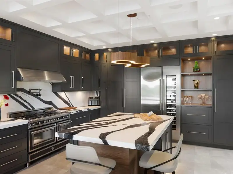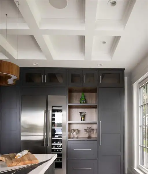 - Soaring 22-ft coffered ceilings