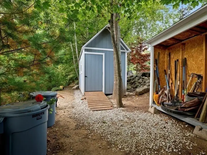 - Extensive professional landscaping with storage shed