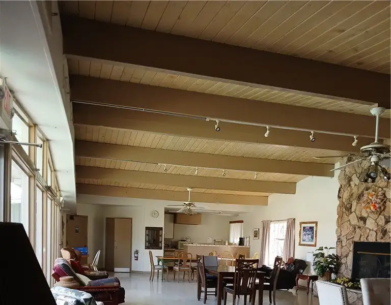 - Open floor plan with high ceilings