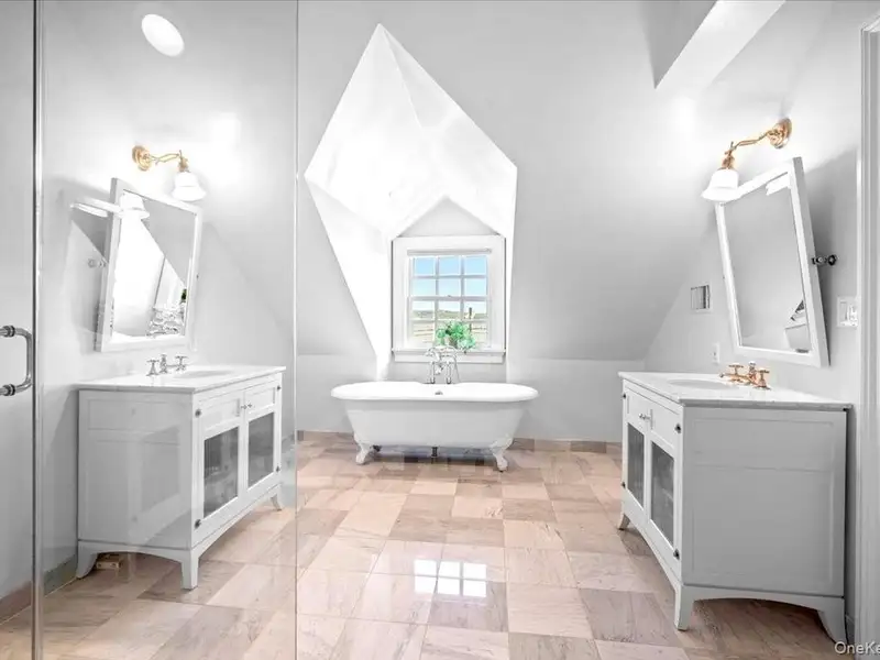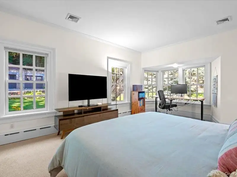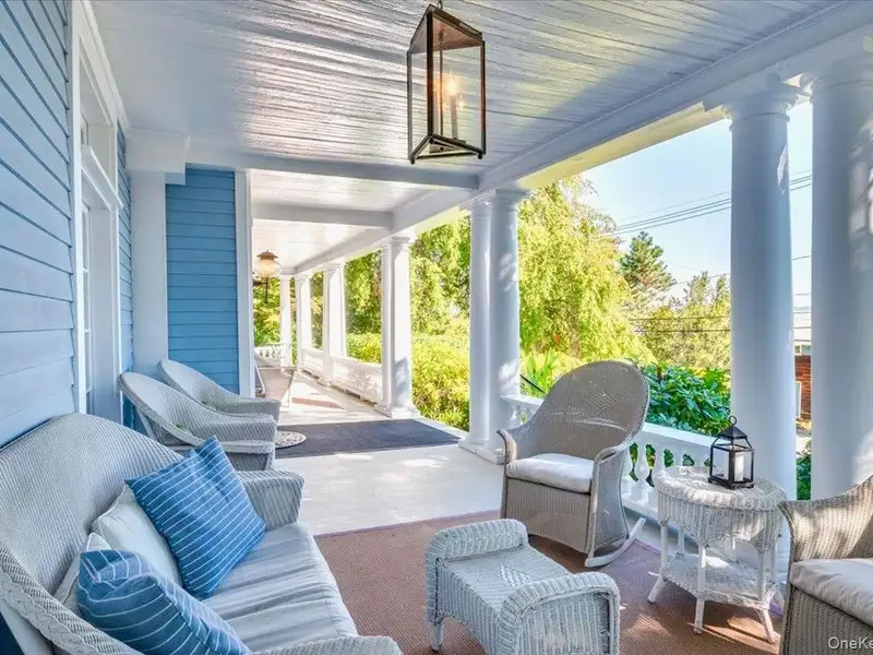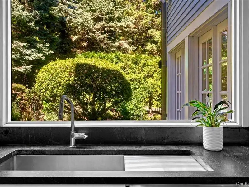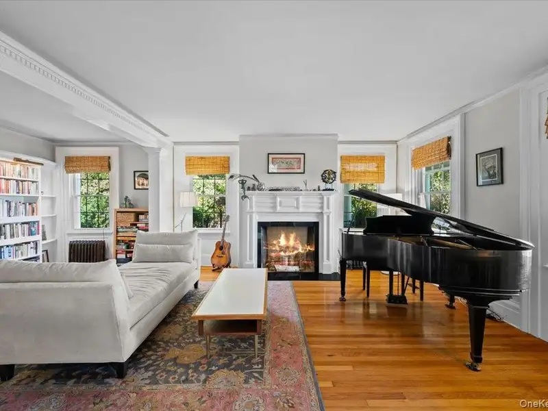 The Periwinkle House - River Views, History, and Soul. Set high above a lush, mature garden with sweeping views of the Hudson River and the bridge, The Periwinkle House is a one of-a-kind Greek Revival jewel - gracious, elegant, and with a great story. What began as a three-room cottage in 1794 grew over two centuries into the 5,016-square foot home standing today - a rare blend of old world craftsmanship and modern soulful luxury. Symmetry and charm define its facade while inside, original architectural details shine: intricate moldings, French doors, soaring ceilings, custom built-ins, cozy window seats, five wood-burning fireplaces, and beautiful wide-plank hardwood floors. The Chef's Kitchen is anchored by the legendary Aga stove, soapstone counters, and a butler's pantry, leading to a sun-splashed breakfast room with French doors which open onto the veranda and broad wraparound porch - perfect for slow mornings or lively summer nights. The formal dining room sets the stage for large gatherings or intimate evenings, and is complete with a built-in bar and a woodburning fireplace. The primary suite is pure serenity with panoramic river views, a huge woodburning fireplace, built-in window seats, a walk-in dressing room with laundry, and a Waterworks spa bath with soaking tub and glass shower. Two additional spacious bedrooms and another Waterworks bath complete the second floor. Upstairs, the third floor surprises with two more bedrooms, full bath, and a media lounge that opens onto a private terrace overlooking the back gardens. Out back, a heated gunite pool and spa are tucked into a fully fenced yard - your own private resort. A four-car garage plus a heated workshop adds flexibility for creatives or collectors, and the U-shaped driveway makes parking and entertaining effortless. Just 25 miles to midtown Manhattan and five minutes to Piermont's riverfront restaurants, cafes, and boutiques, the Periwinkle House balances history, luxury, and lifestyle in a way few homes ever do. This special home is a bridge between centuries. Award winning South Orangetown Schools . The new walking path behind the house links to the Old Erie Esposito Path .