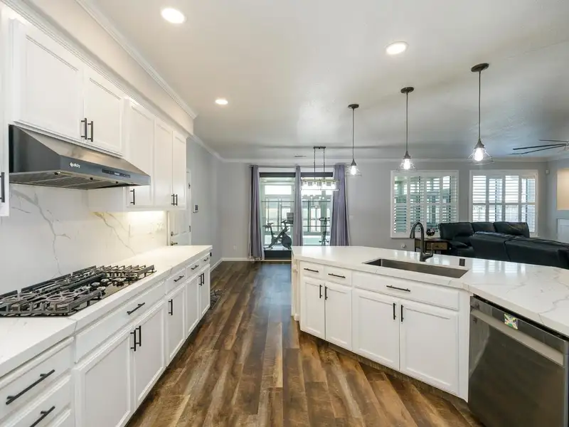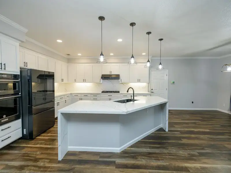 - Quartz kitchen counters and large center island