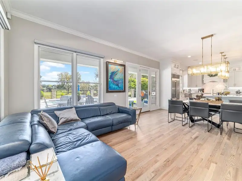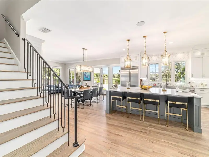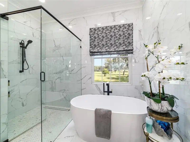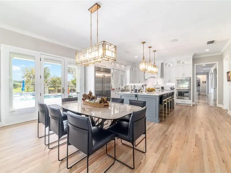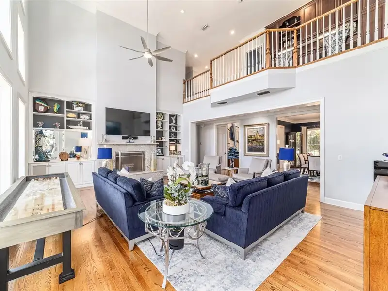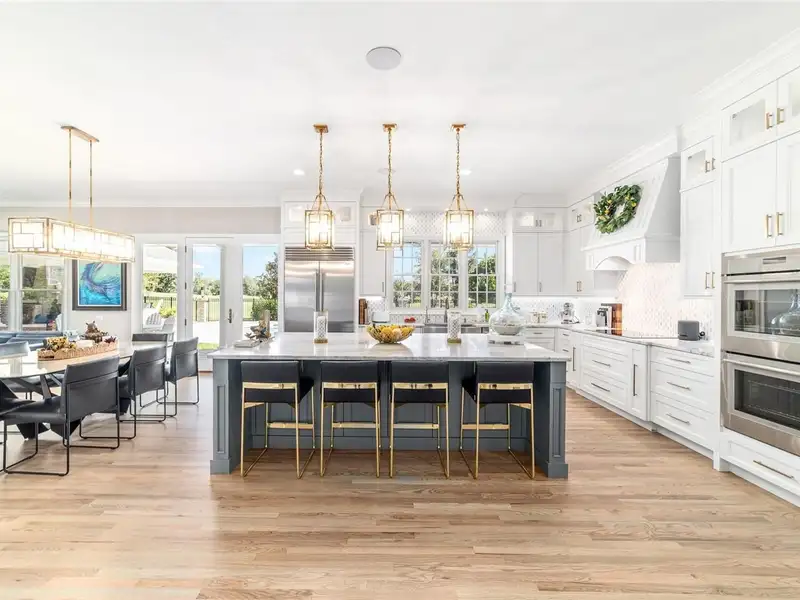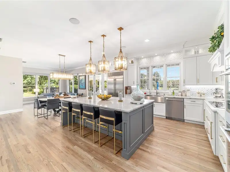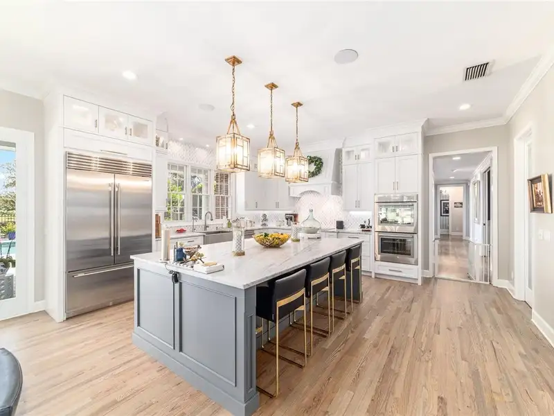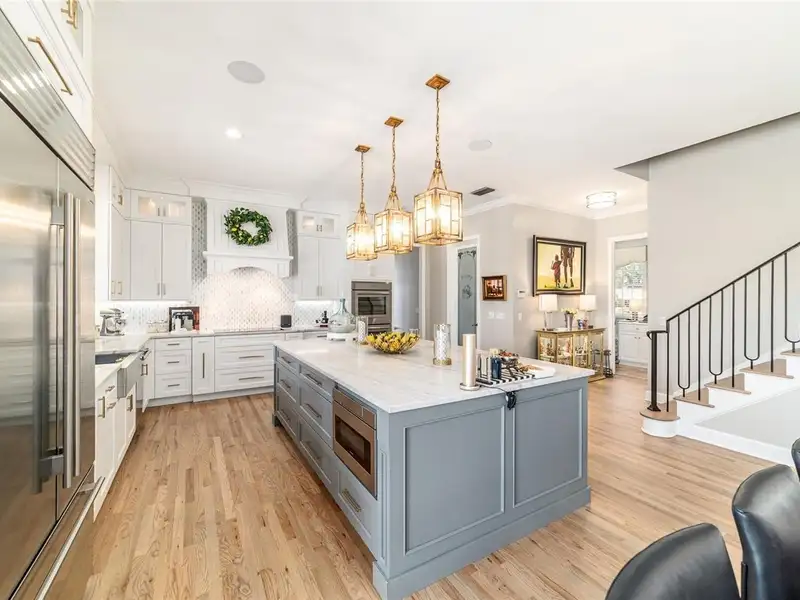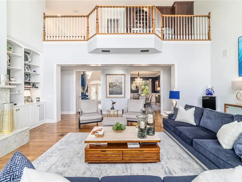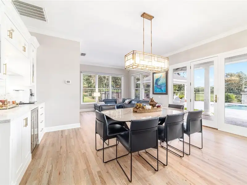 This stunning two-story red brick estate offers timeless charm, modern updates and breathtaking golf course views overlooking the 15th hole and beyond. Featuring 4 bedrooms, 3 full baths and 2 half baths, every space has been thoughtfully designed for everyday living. Step through the foyer and you’re greeted by a custom staircase leading to the second floor of the home. The main floor features a formal living room with a fireplace and mantle that have been beautifully updated, a spacious formal dining room and a family room that extends 2 stories, where walls of windows fill the space with natural light. A second wood-burning fireplace framed by custom built-ins anchors this inviting gathering space. The gourmet kitchen, fully remodeled in 2018, truly is the heart of the home with white wood cabinetry, gorgeous granite countertops, double ovens and a thoughtful layout that opens to a breakfast area and cozy sitting room, complete with a built in cabinet and beverage bar. The refinished hardwood floors flow beautifully throughout this space, extending to the staircase that leads to a large bonus/media room. The primary suite, completely redesigned in 2023, has exquisite finishes and a spa-inspired bath. Up the main staircase, you’ll find a loft area with a built-in desk and three additional bedrooms, with two sharing a Jack-and-Jill bath and one with a private ensuite, both featuring updated showers and modern touches. Outdoors, enjoy your own private oasis. The saltwater pool, fully redone in 2024 with new marcite, stone and updated pool equipment is surrounded by beautiful bluestone pavers and is fully fenced with a gate for privacy. Entertain year-round under the 25' x 25' pavilion, complete with a wood-burning fireplace and TV hookup, making it the ultimate space for weekend gatherings or quiet evenings by the fire. In addition, the grounds are beautifully landscaped and enhanced by extensive landscape lighting. Additional highlights include an air-conditioned and tiled 3-car garage, perfect for a workshop or home gym. The laundry room update (scheduled for completion December 2025) will feature custom cabinetry matching the kitchen for a cohesive, elevated look throughout the home. This home also has a tankless hot water heater, whole house generator, brand new sub zero refrigerator and all electric drapes. Don't miss this one in the beautiful Country Club of Ocala.