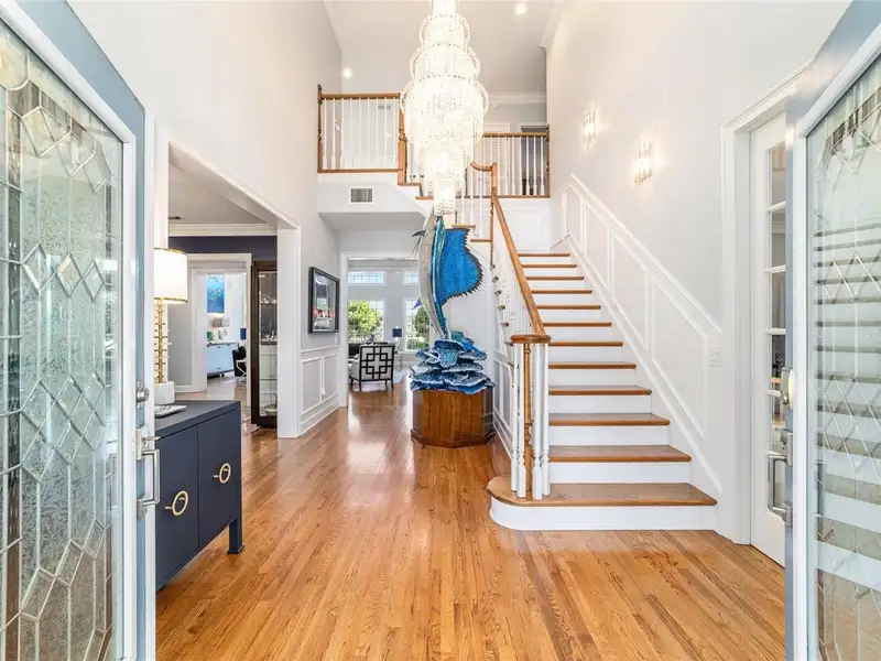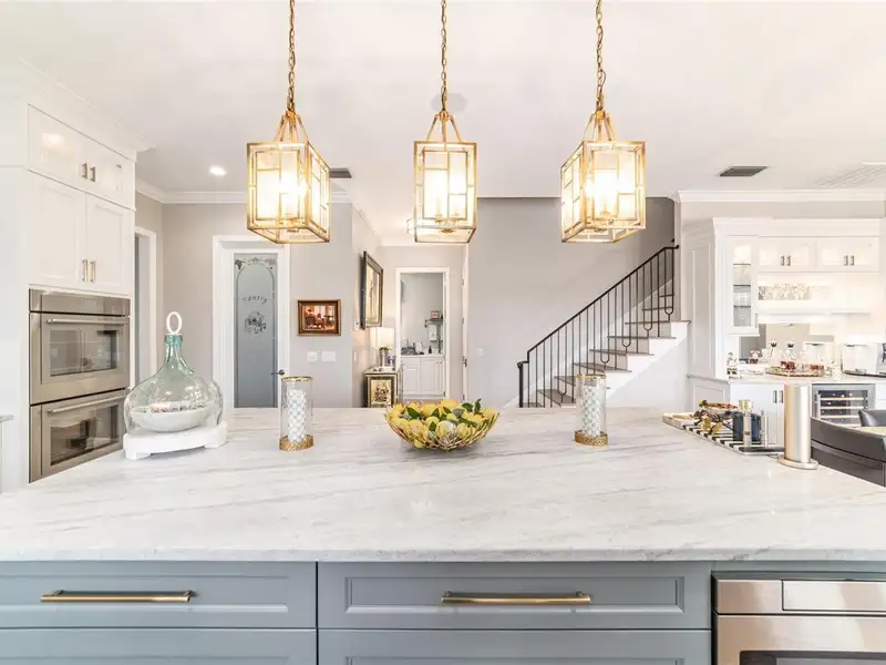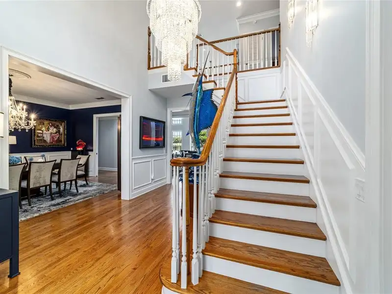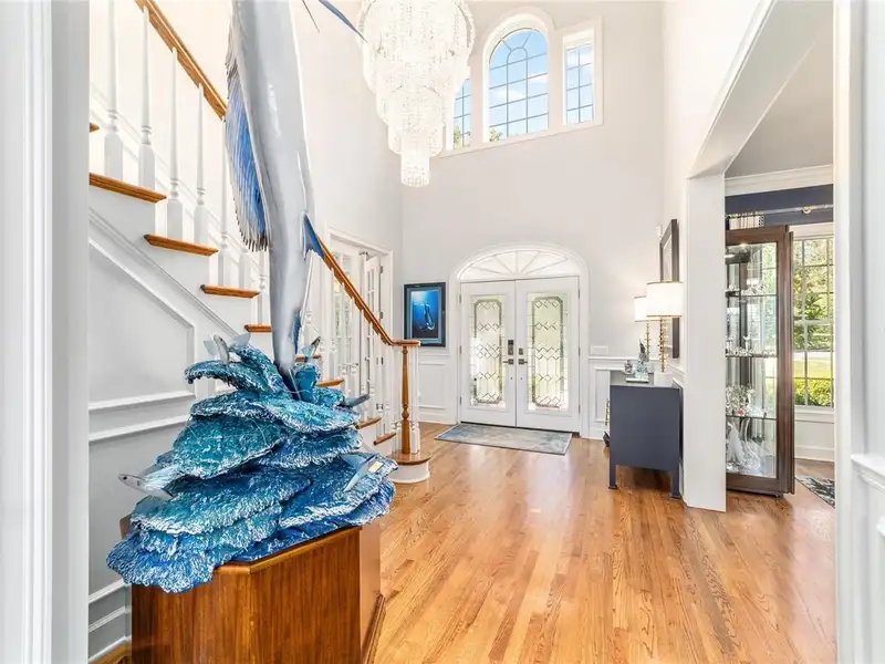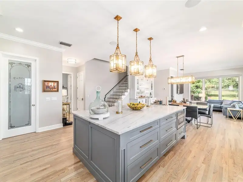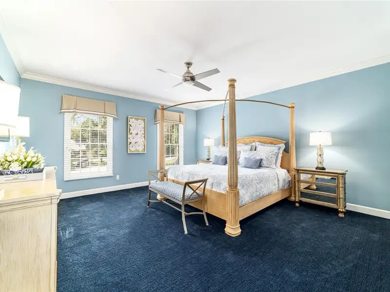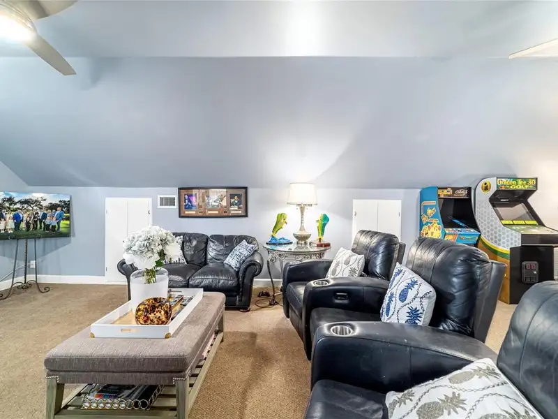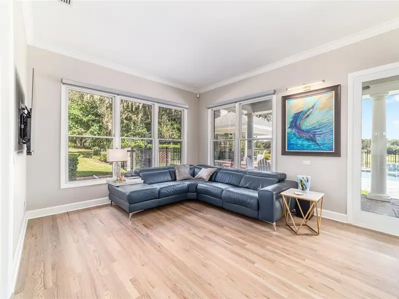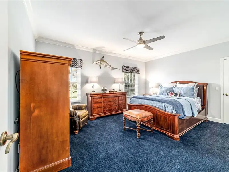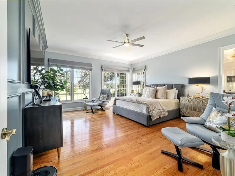 This stunning two-story red brick estate offers timeless charm, modern updates and breathtaking golf course views overlooking the 15th hole and beyond. Featuring 4 bedrooms, 3 full baths and 2 half baths, every space has been thoughtfully designed for everyday living. Step through the foyer and you’re greeted by a custom staircase leading to the second floor of the home. The main floor features a formal living room with a fireplace and mantle that have been beautifully updated, a spacious formal dining room and a family room that extends 2 stories, where walls of windows fill the space with natural light. A second wood-burning fireplace framed by custom built-ins anchors this inviting gathering space. The gourmet kitchen, fully remodeled in 2018, truly is the heart of the home with white wood cabinetry, gorgeous granite countertops, double ovens and a thoughtful layout that opens to a breakfast area and cozy sitting room, complete with a built in cabinet and beverage bar. The refinished hardwood floors flow beautifully throughout this space, extending to the staircase that leads to a large bonus/media room. The primary suite, completely redesigned in 2023, has exquisite finishes and a spa-inspired bath. Up the main staircase, you’ll find a loft area with a built-in desk and three additional bedrooms, with two sharing a Jack-and-Jill bath and one with a private ensuite, both featuring updated showers and modern touches. Outdoors, enjoy your own private oasis. The saltwater pool, fully redone in 2024 with new marcite, stone and updated pool equipment is surrounded by beautiful bluestone pavers and is fully fenced with a gate for privacy. Entertain year-round under the 25' x 25' pavilion, complete with a wood-burning fireplace and TV hookup, making it the ultimate space for weekend gatherings or quiet evenings by the fire. In addition, the grounds are beautifully landscaped and enhanced by extensive landscape lighting. Additional highlights include an air-conditioned and tiled 3-car garage, perfect for a workshop or home gym. The laundry room update (scheduled for completion December 2025) will feature custom cabinetry matching the kitchen for a cohesive, elevated look throughout the home. This home also has a tankless hot water heater, whole house generator, brand new sub zero refrigerator and all electric drapes. Don't miss this one in the beautiful Country Club of Ocala.
