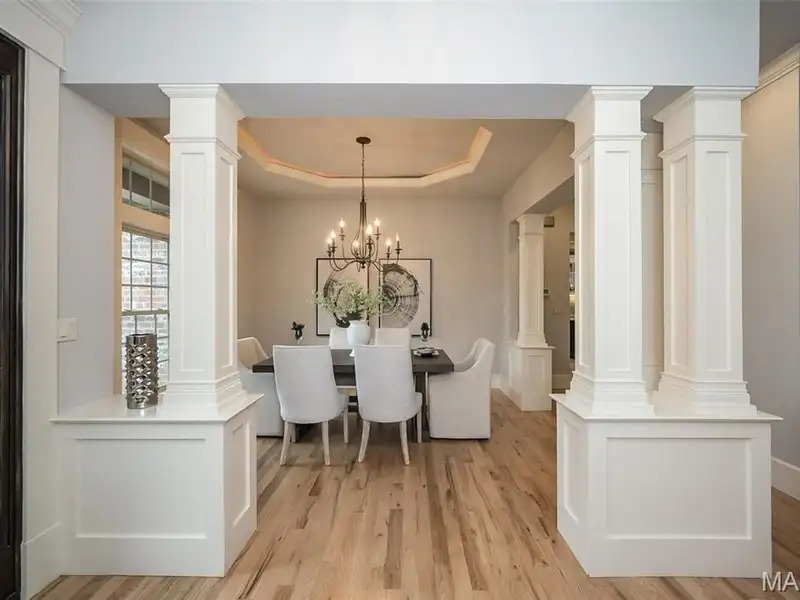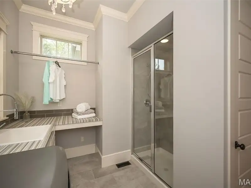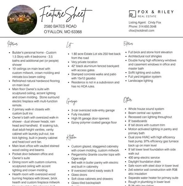 The Birchwood at Bates Bend - This site is in the prime location of Dardenne Prairie and is the Builder's personal residence. The Estate Lot is 1.8 Acres with an irrigated and pampered lawn where the residence is positioned 250 feet from the road for a grand approach and free of HOA rules. Destined for parties for a crowd or just impromptu fun. The front meadow is ready for wedding tents, family soccer tournaments and a future pickle ball court could easily be in your dreams for the rear extensive lawn area. The long driveway becomes the Red Carpet for any event. All that is missing is the paparazzi! *****The Inspiration of the Birchwood Residence was a collective effort of Architect Larry Spraul of LR Spraul Designs, and Custom Builder Tim Griffey of Griffey Custom Homes. The overall theme was to incorporate three loves: “The love of the outdoors”, “Comfortable, yet dramatic spaces”, and “The celebration of fine craftsmanship” that is displayed throughout the home. The inspiration and careful direction of the concept resulted in a special home to share with family and friends, from small gatherings to large memorable events. So many memories are awaiting….. The positioning of the structure led to the creation of several exterior zones: The large meadow has been home to pampering all guests including the 2 resident labs who have worn out the owners with their mastery of “Fetch”. You could also evolve into a skilled “referee” for family football and be rewarded with a whistle to control the crowd. The aluminum fenced rear yard has proven to keep the 4-legged residents and a herd of wild grandchildren corralled and is large enough to have court sports and a pool. .......The yard flows to the right of the home to a private patio area from the walk-out lower level with an additional 2,361 square feet of high ceiling spaces to ignite your imagination. When the pups and kids are coated with the remnants of their outdoor fun, the Family Entry has a pet and people shower center for their re-entry into the pampered world of the interior. The Family Entry contains the perfect drop zones, the Expansive Laundry Center and quick Powder Room access. The finishes are exceptionally executed in every area of the home. From the Main Entry you have a sense of what lies within. The Main Level features 10-foot Ceilings, 8 Foot Doors, and job finished hardwood floors throughout the public spaces and owner’s private spaces. The craftsmanship begins with sleek box beamed ceiling treatment, architecturally correct window surrounds featuring transoms with cross head crowns and 8-inch base trim. The design is sleek and sculptural, with details that will easily embrace a traditional to a polished contemporary setting. This is not a vanilla box by any means. Every corner, every view, leaves something to be discovered. The East Wing of the Main Floor is dedicated to pampering the Owners at every turn. There is no fighting over closet space with two primary custom closets and a place for every shopping treasure. The Bedroom contains a large salon setting with fireplace and pocket doors that lead to a flex space with a breath-taking soaring hardwood ceiling. The owners used the space for a home office, but it could easily be a private den or library. The Owner’s Suite features every item the resident royalty would demand. The shower has room for a crowd, and the acoustics could be perfect for your morning American Idol rehearsal. The large lounging tub overlooks your wooded backdrop. You may be tempted to bring a towel. Review the extensive photography for a complete understanding of what this property offers: An Open Concept that captures the views and flows from Great Room, Private Dining Room, Family Dining, an Island that seats 8 comfortably, a fireside Hearth Room, a Kitchen that has everything including a walk-in butler pantry. Every space gives you the feeling of walking through a magazine. Owner is a licensed agent. Enjoy!!!