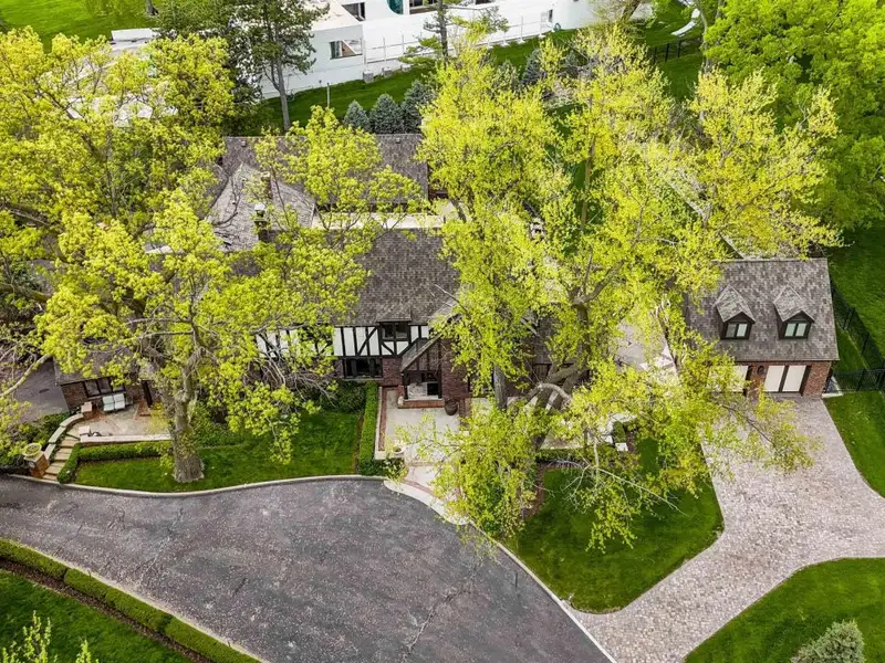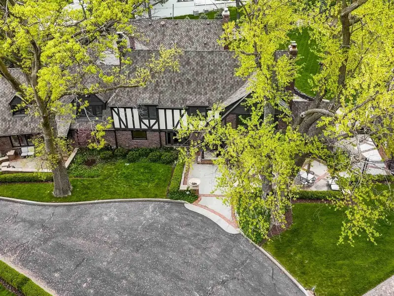 - Stately brick exterior with circular drive