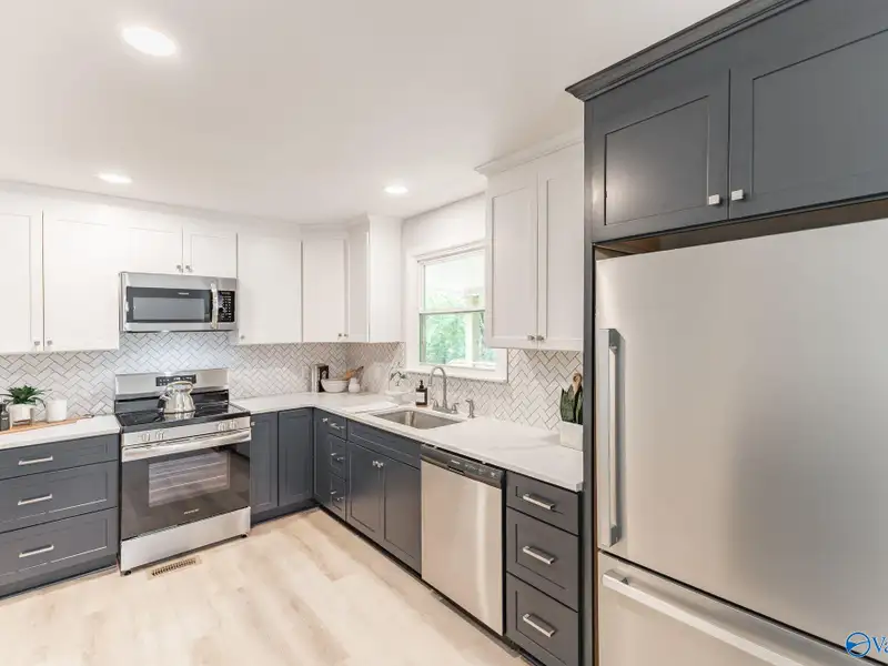 - Kitchen with quartz countertops