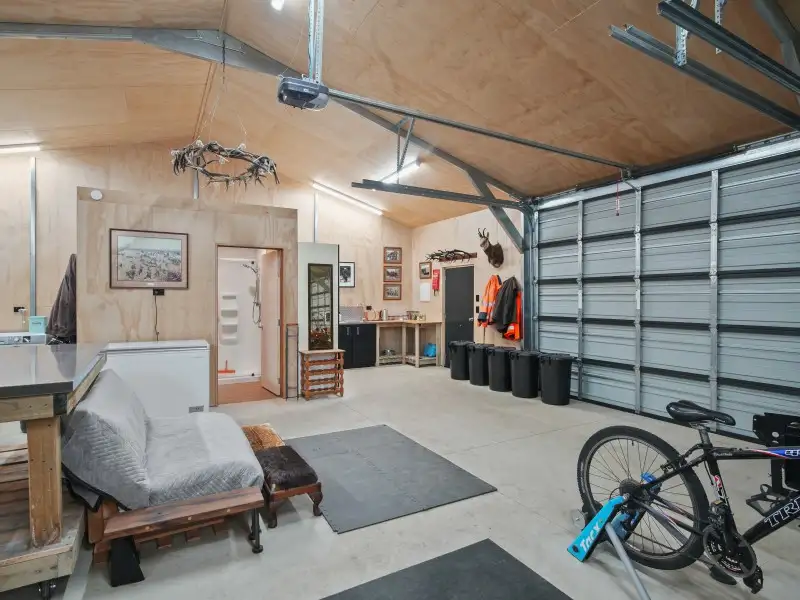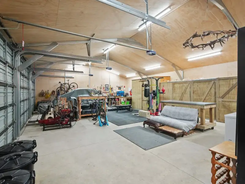 Beyond the home, the lifestyle offering is exceptional. A 172m² dedicated workshop, complete with fire, kitchenette, bathroom, laundry, specialist power point for welding, and bespoke storage for outdoor gear. A professional gym setup, movable stainless bench, and adjoining covered outdoor area ensure this space is as versatile as it is practical.